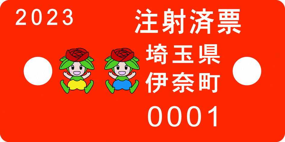 令和5年度から注射済票(プレート)のデザインをより親しみやすいデザインに変更しました。 狂犬病予防注射を実施した場合、伊奈町役場環境対策課窓口にて、注射済証(紙面)を持参のうえ、交付手続きを行うようお願いいたします。交付する鑑札や注射済票は、迷子札としても大変有効ですので、犬に装着するようにしてください。 ※令和5年3月2日以降に注射実施した場合の交付分になります。