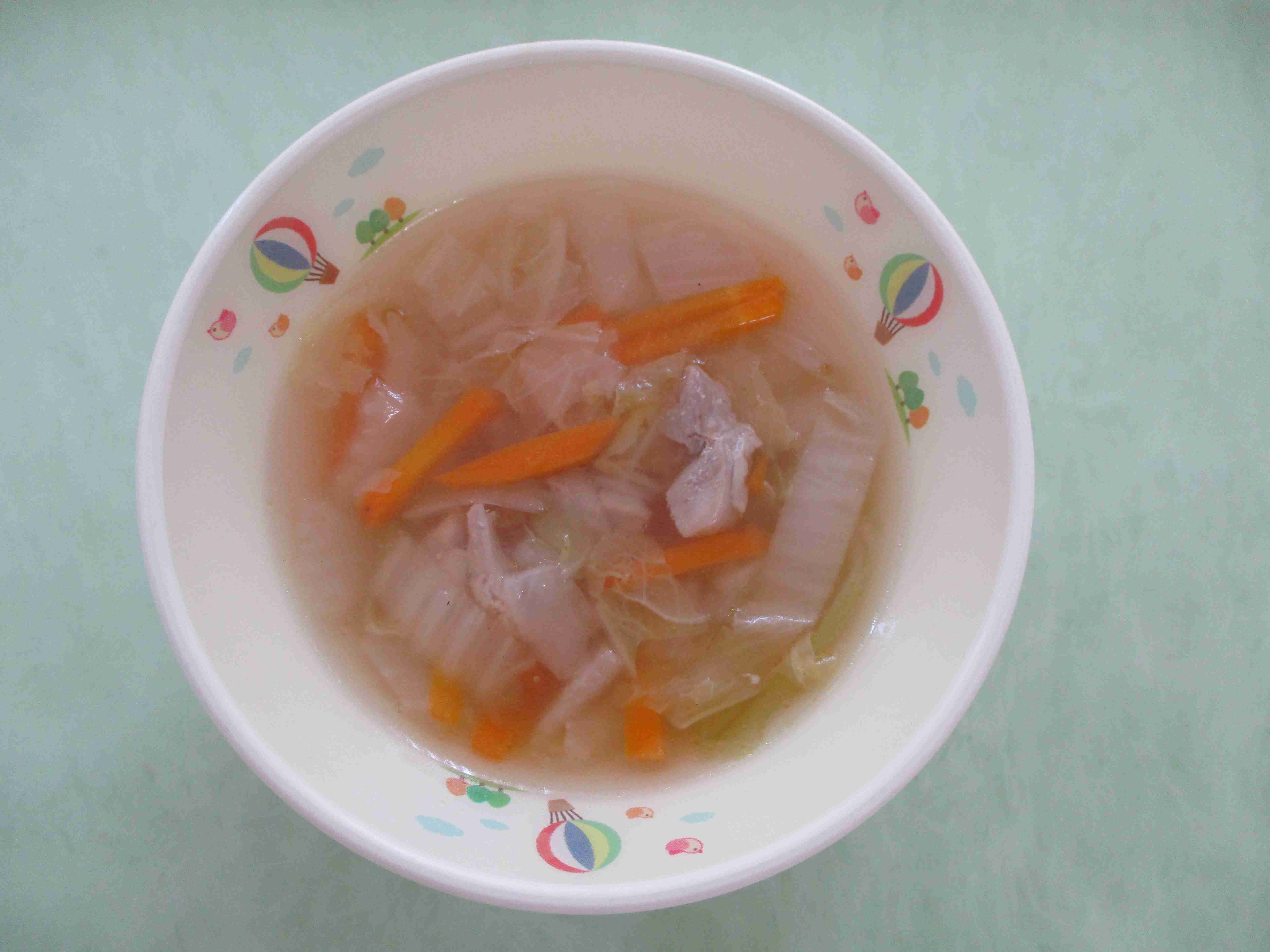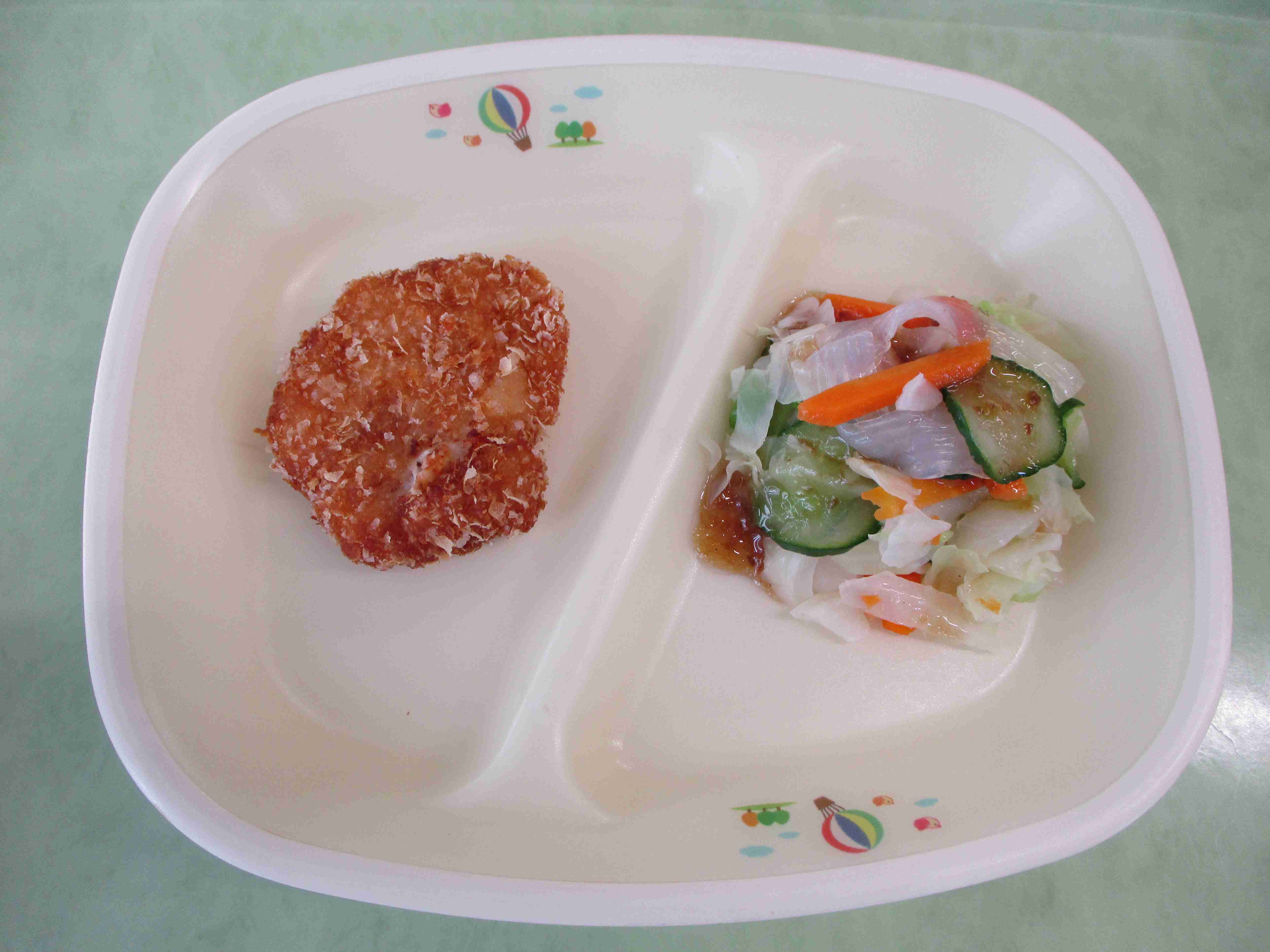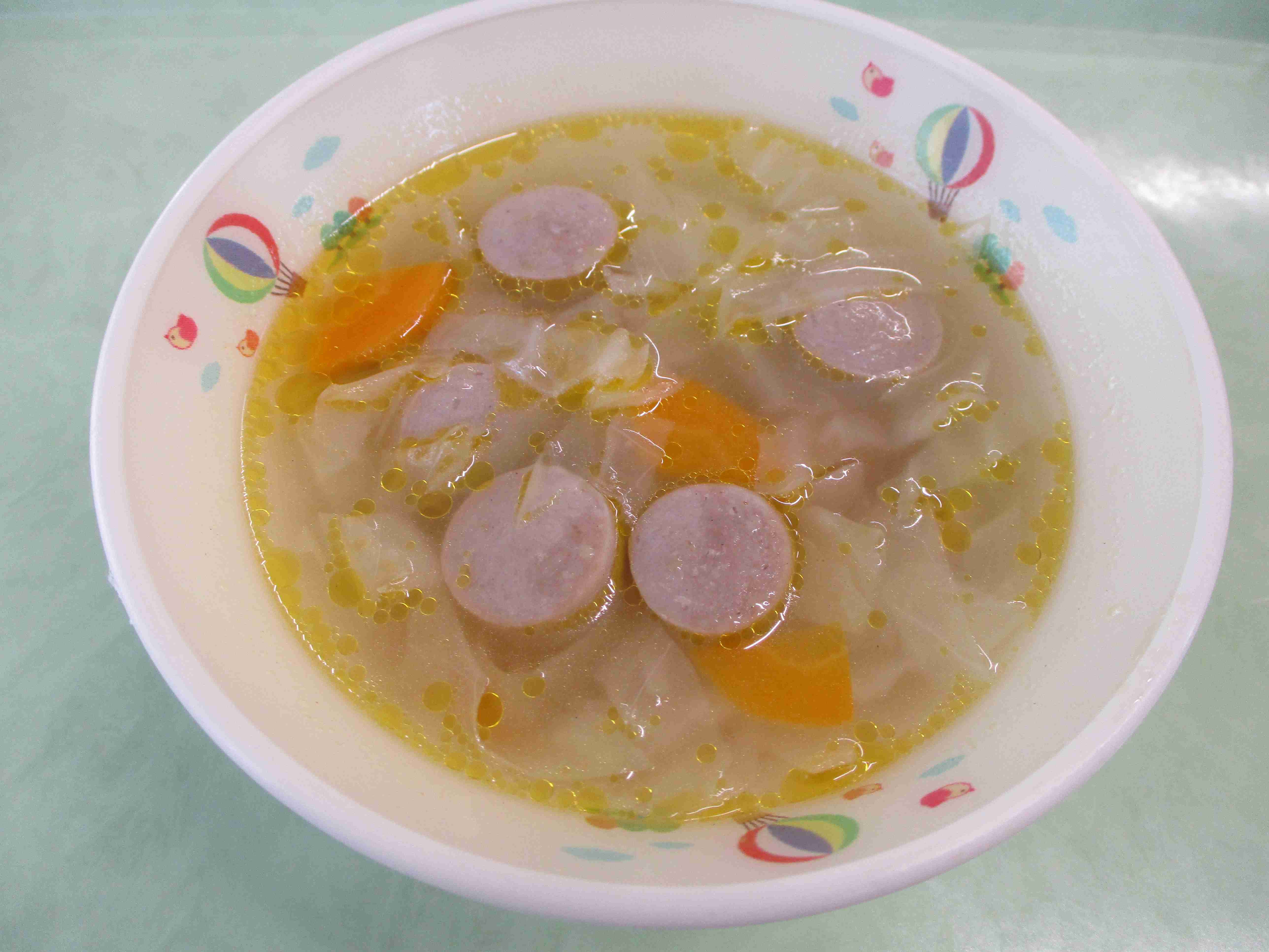 今日はキャベツのお話です。キャベツはヨーロッパで生まれた野菜で、フランスは「シュー」と呼びます。洋菓子のシュークリームは形がキャベツに似ているのでその名前がついたそうです。キャベツにはビタミンCやビタミンUが多く含まれています。ビタミンンUは胃の消化を助け、胃潰瘍に効果があるといわれていて、胃薬にも使われています。今日はサラダにしました。残さず食べましょう。