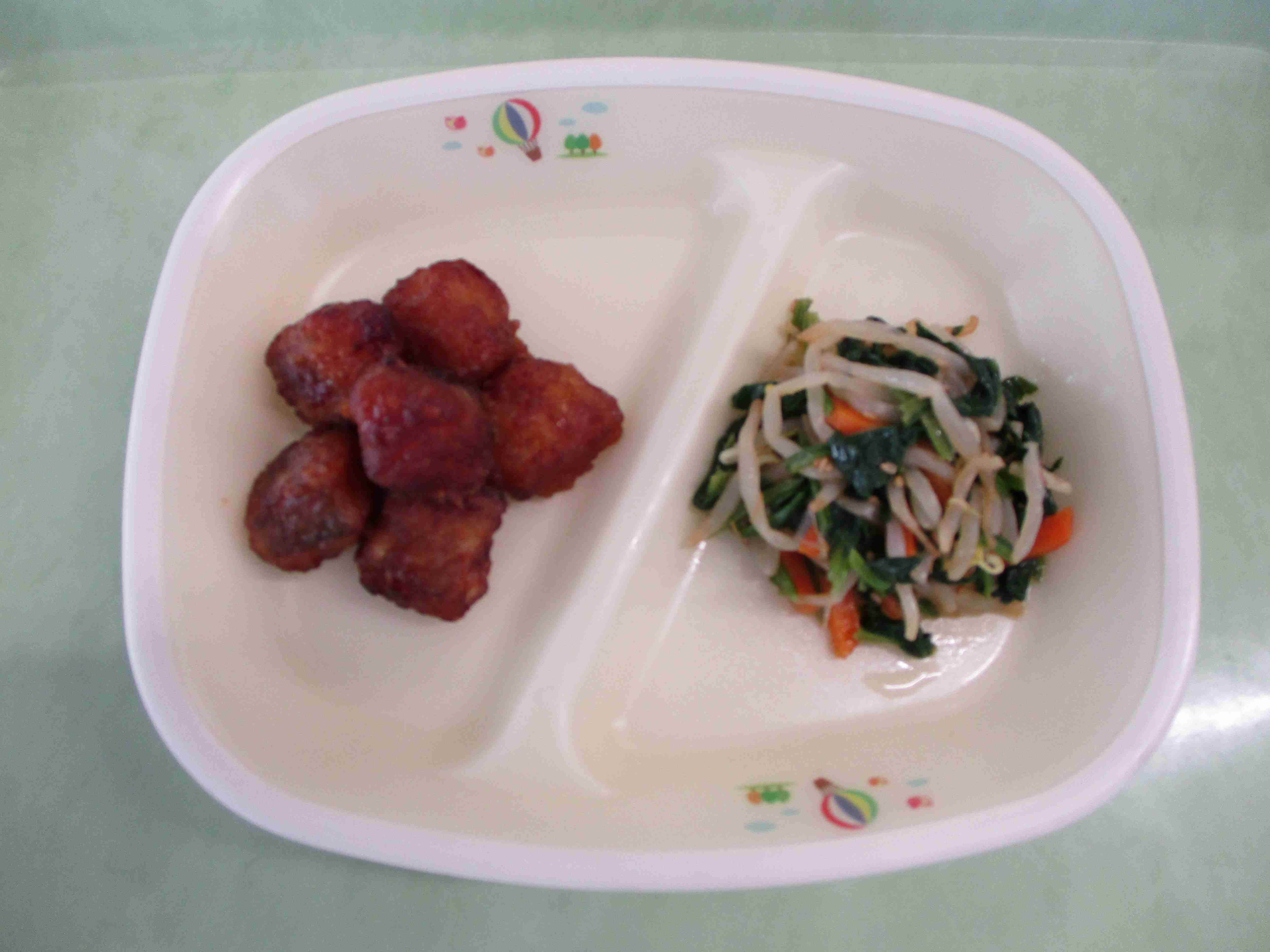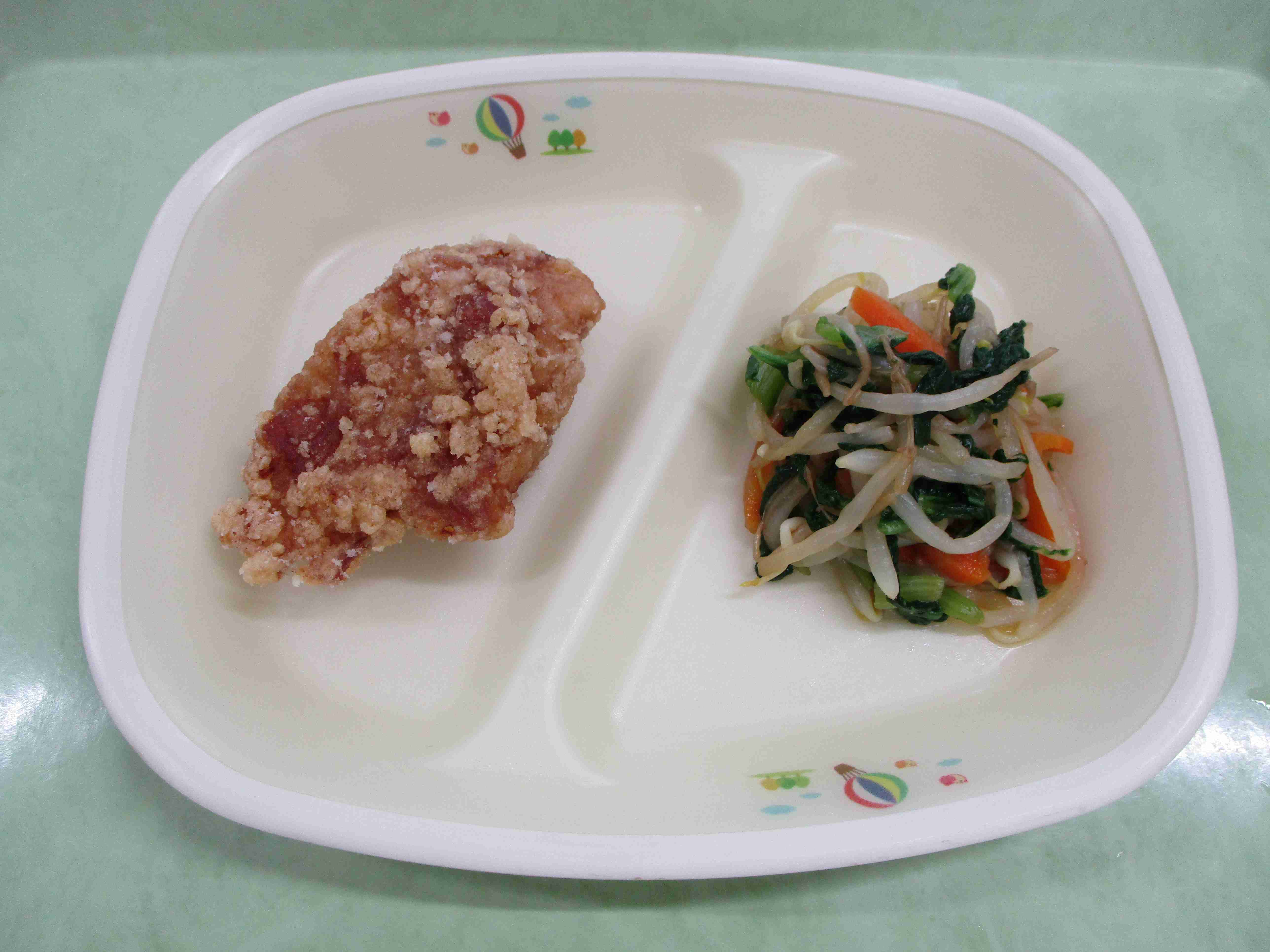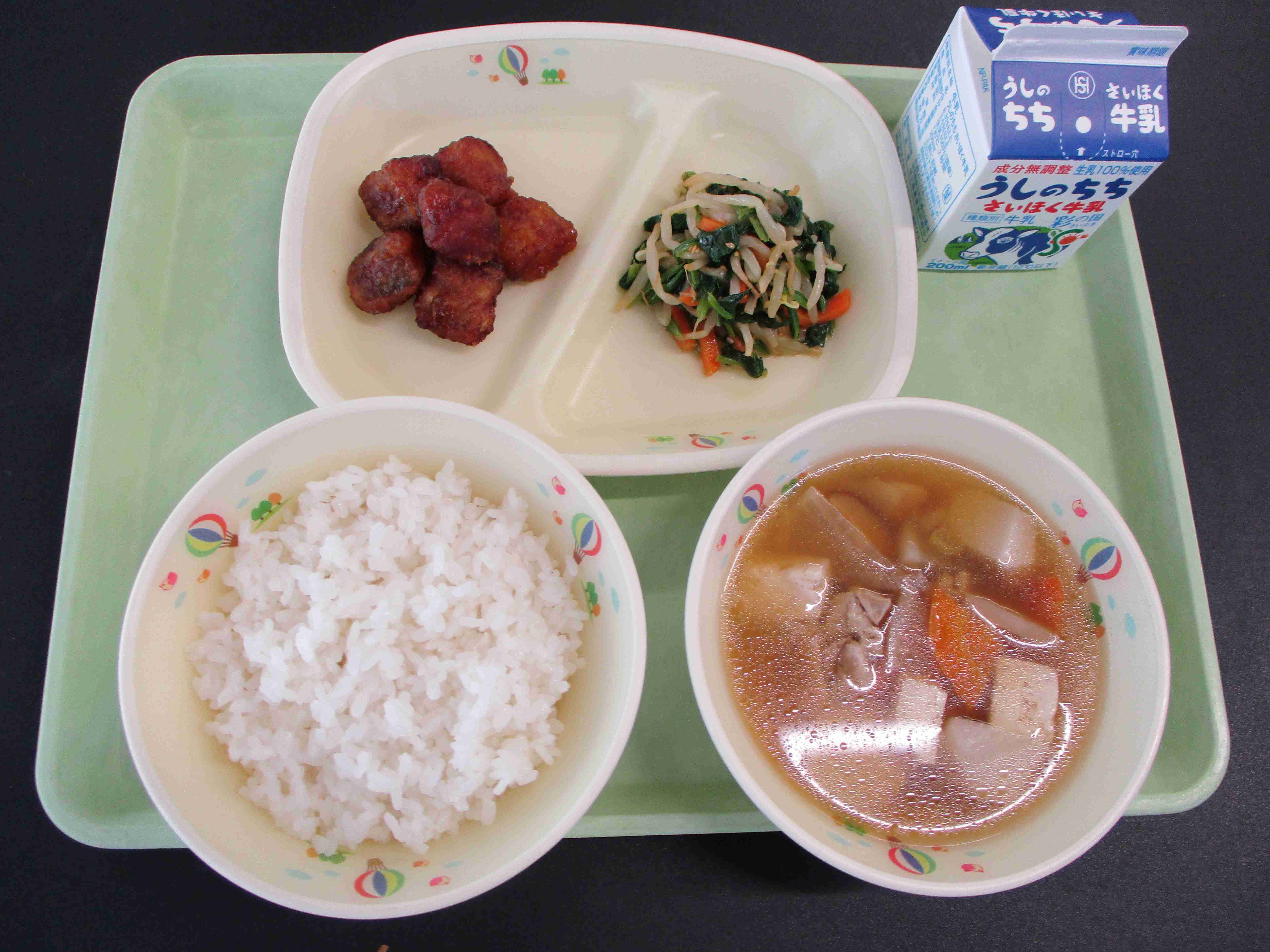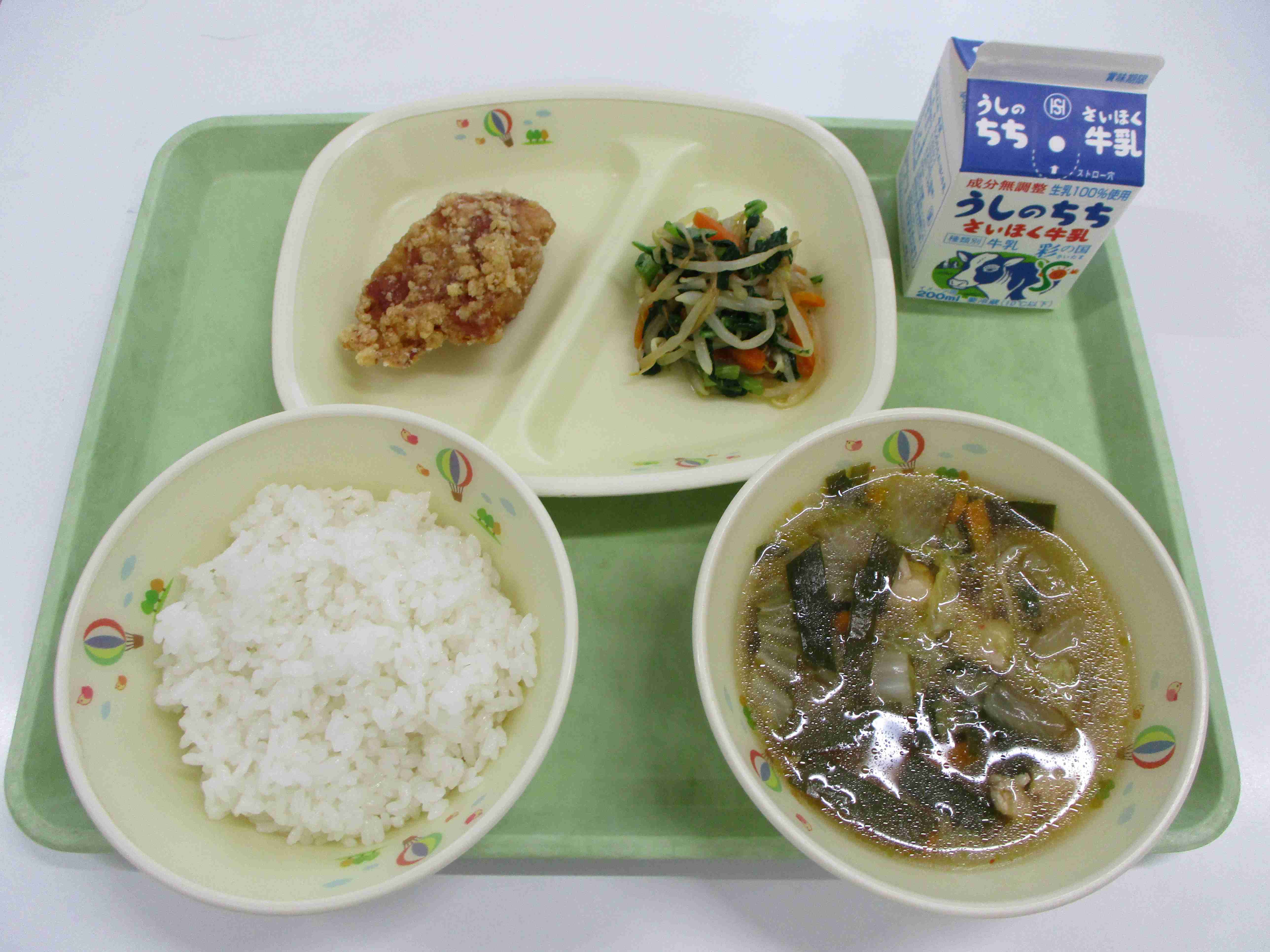 ごはん 牛乳 鶏のから揚げ おひたし キムチスープ