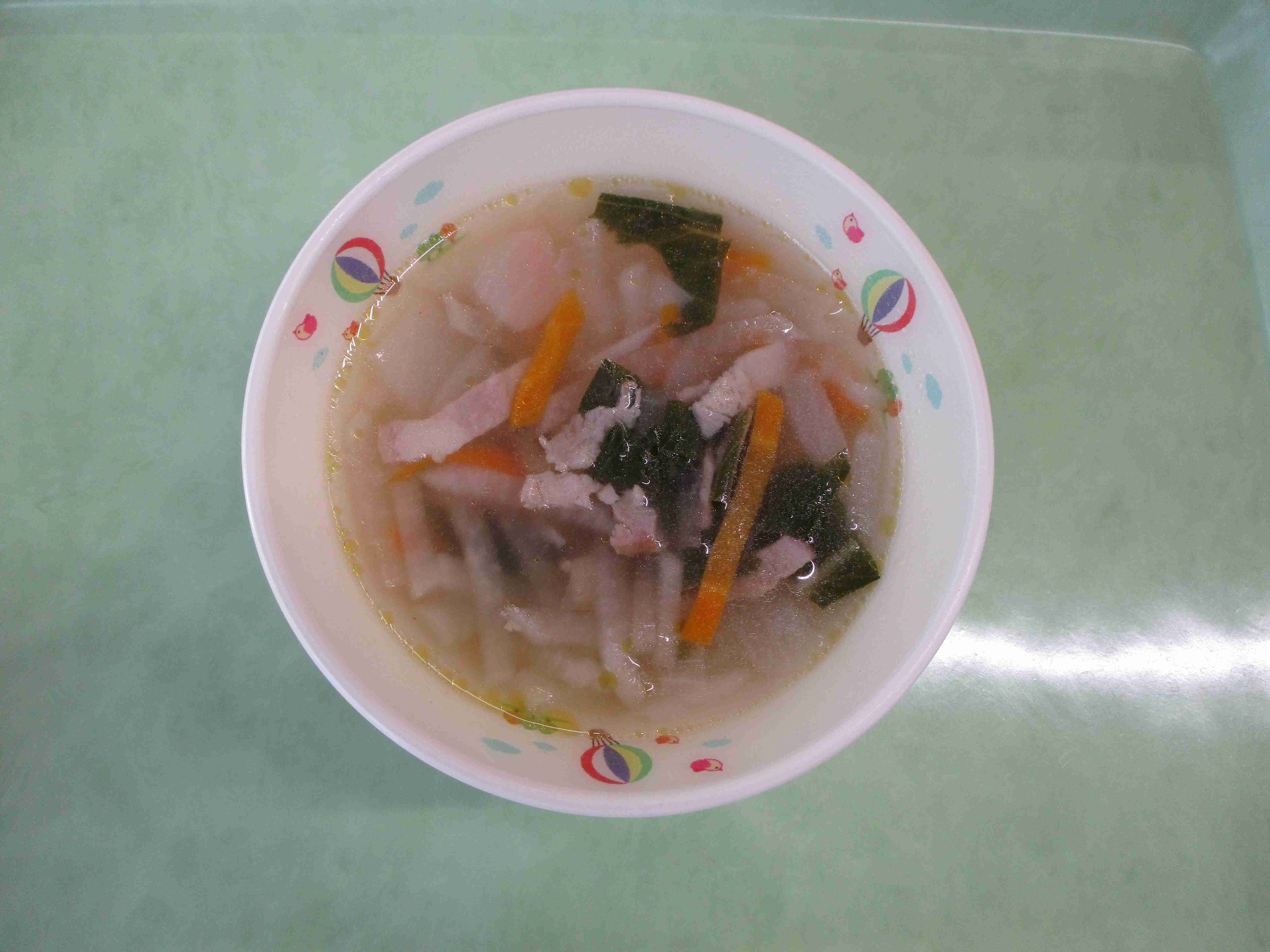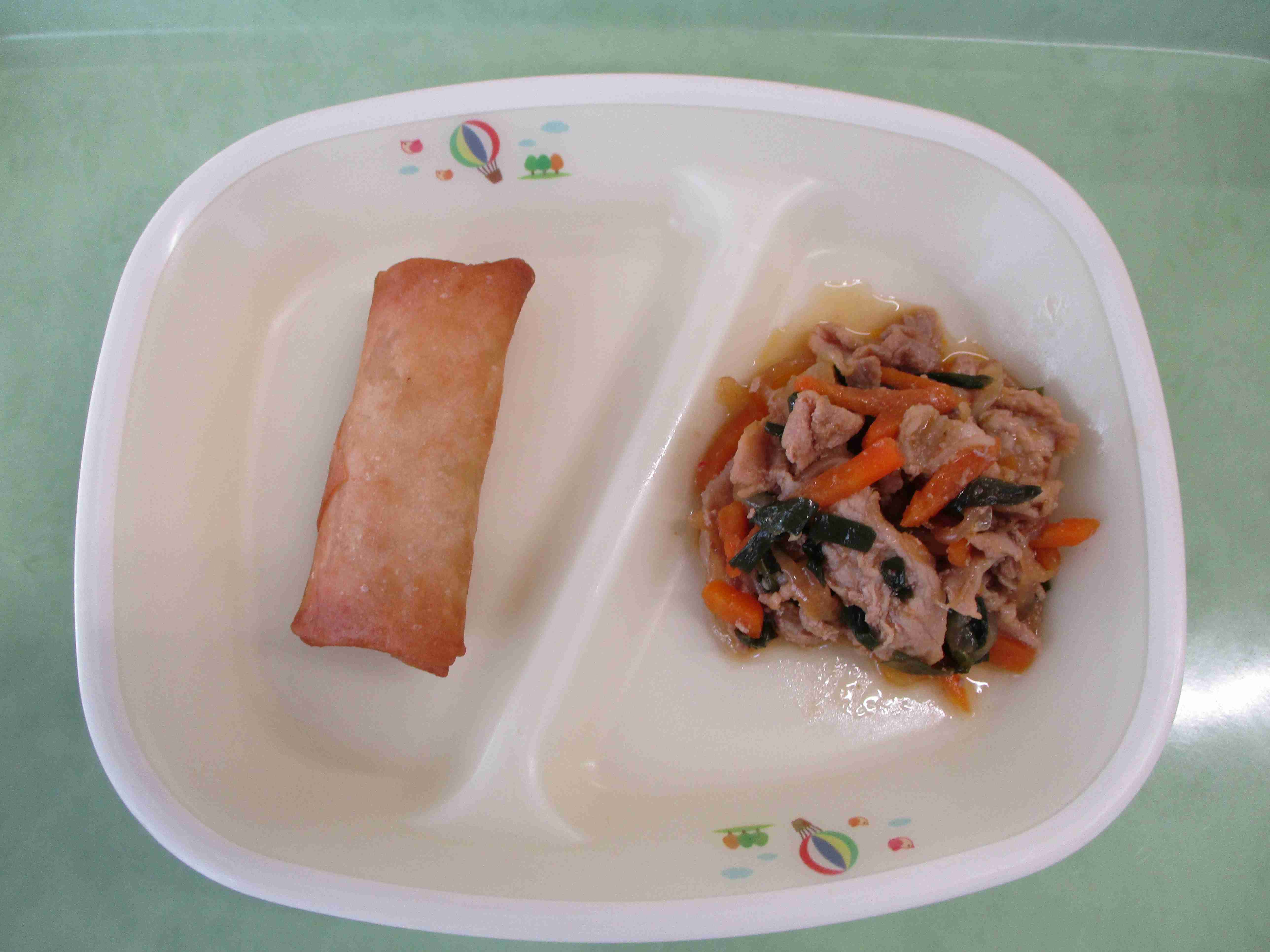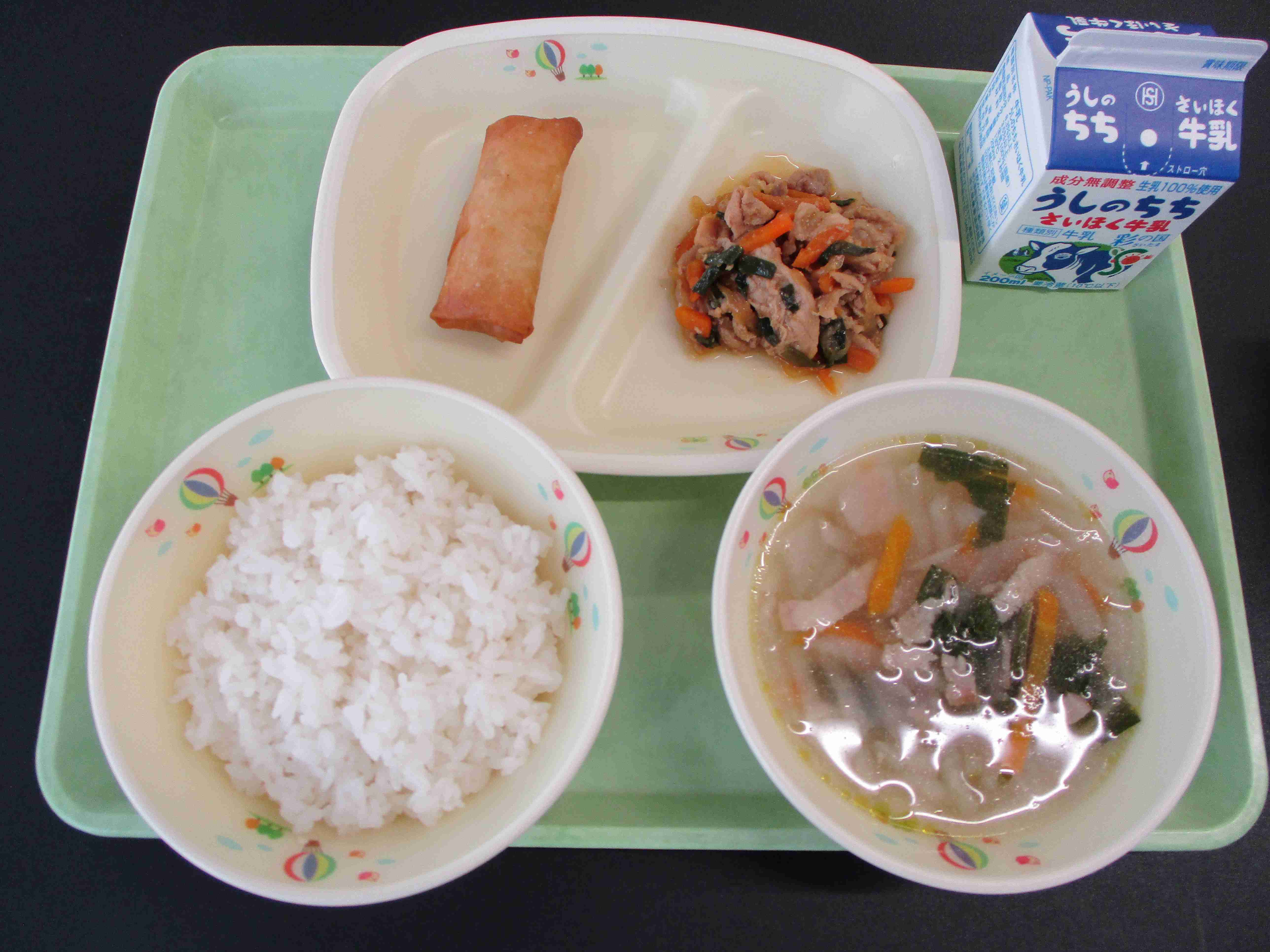 ごはん 牛乳 春巻き 焼き肉 大根とベーコンのスープ