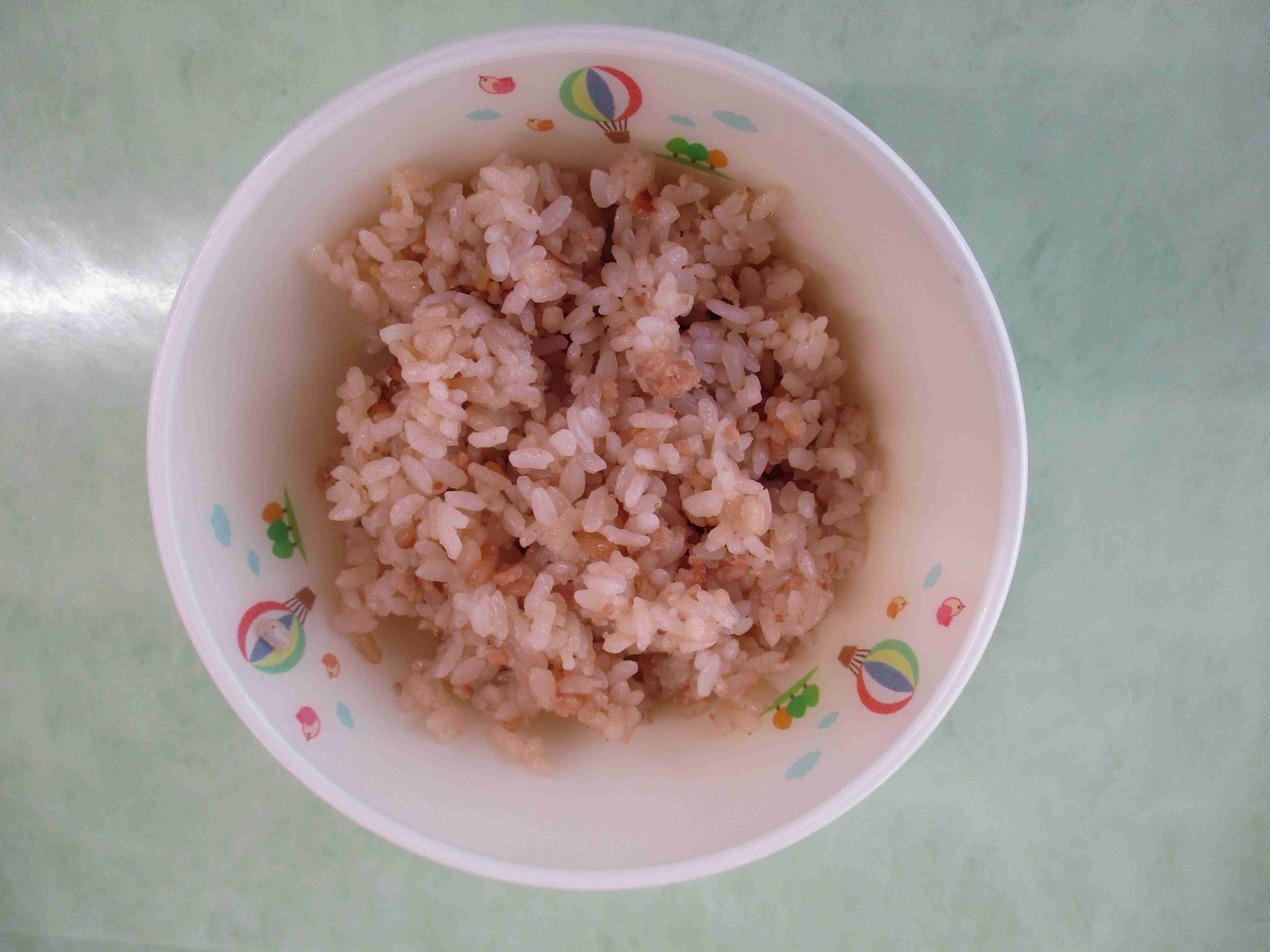 今日はお米のお話です。日本の食事にはかかすことのできないお米は、私たちが体に動かすエネルギーの元になる炭水化物や体を作るたんぱく質が豊富です。そして、私たちの脳が働くために必要な栄養である『ブドウ糖』が含まれています。これは、みなさんが学校でしっかり勉強をするために欠かせない栄養です。ちゃんと取らないと集中力が出なかったり、体がだるくなったりするので毎日のご飯でしっかりと脳に栄養をあげてくださいね。
