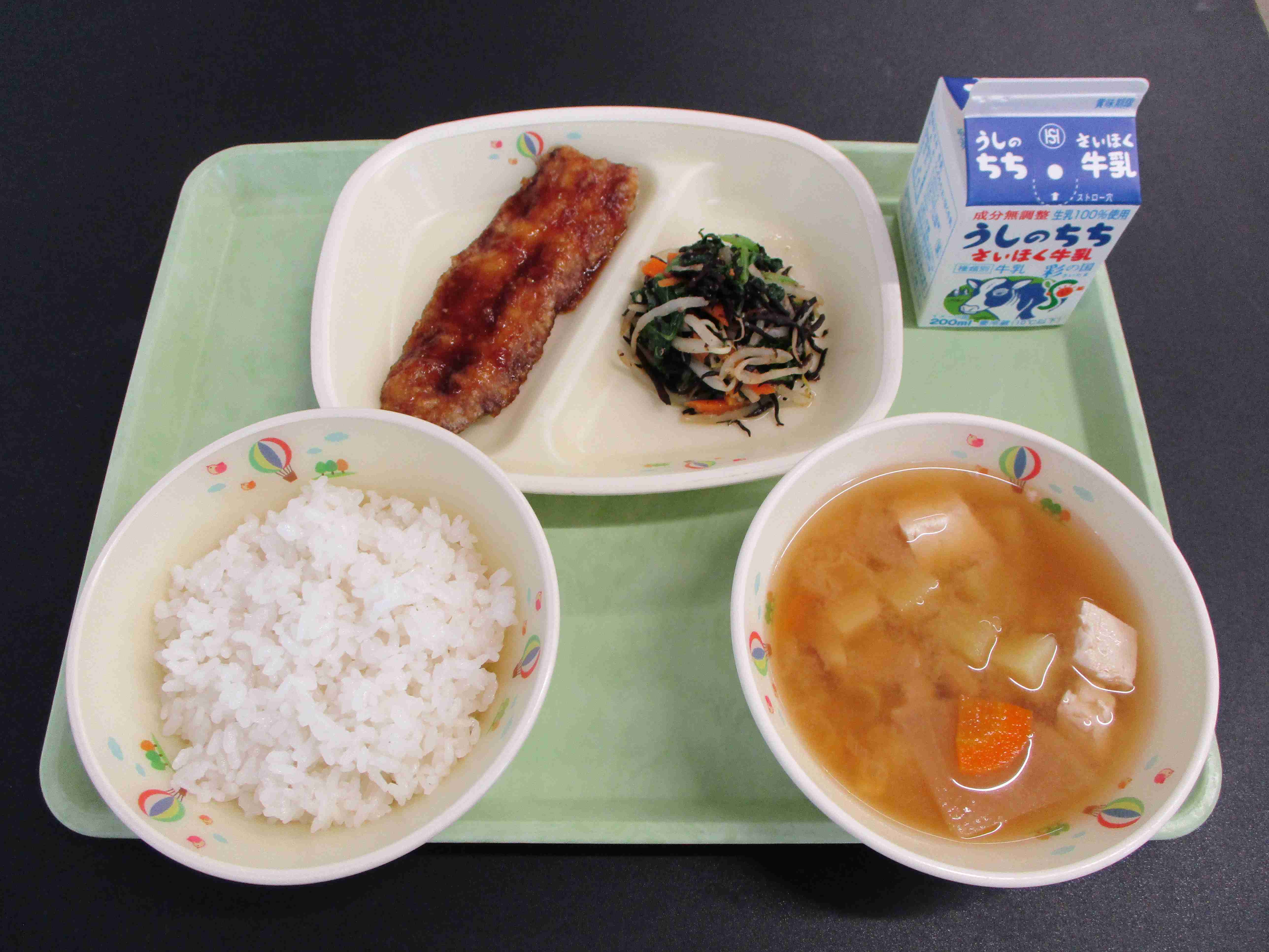 ごはん 牛乳 さんまのかば焼き さつま汁 ひじきの中華ごま和え