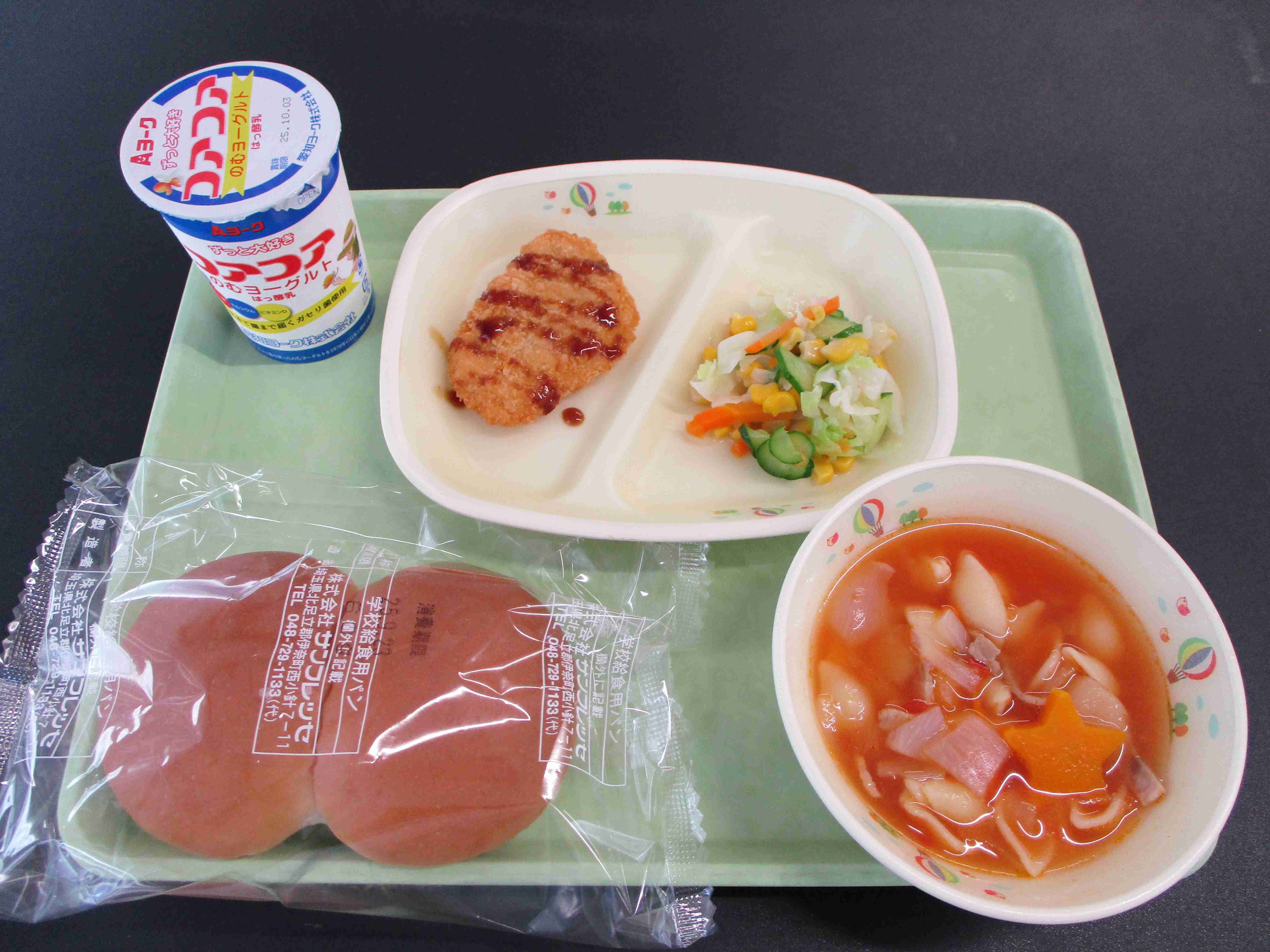 はちみつパン のむヨーグルト チキンカツ コーンサラダ ミネストローネ