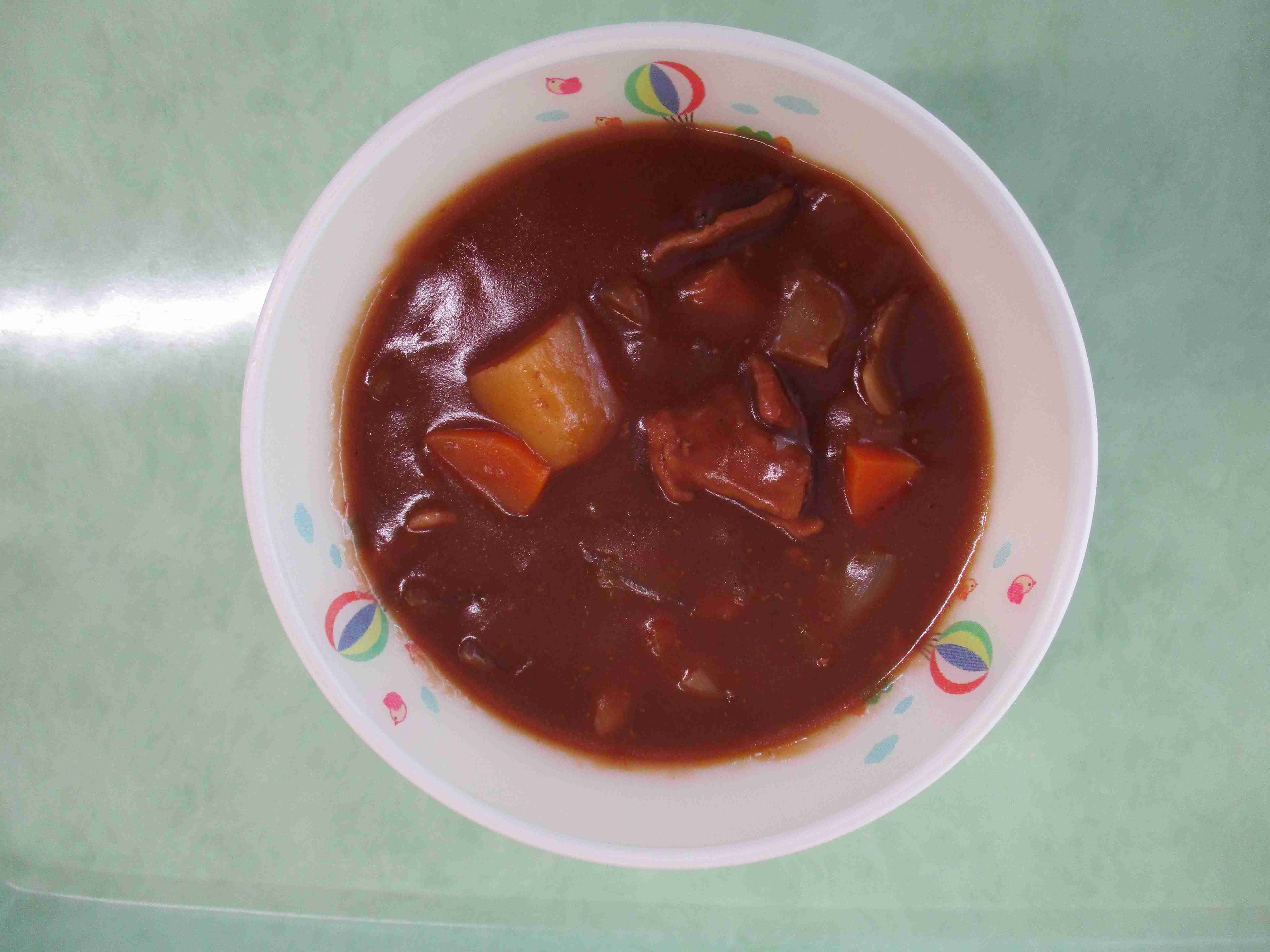 今日は、じゃがいものお話です。じゃがいもにはでんぷんとビタミンCが多く入っています。でんぷんは、皆さんの体を動かす力や体温のもとになります。パンやご飯のかわりにじゃがいもをたくさん食べる国もあるんですよ。ビタミンCは、体の調子をよくしたり、肌をきれいにしたりしてくれます。じゃがいものビタミンCは火を通してもこわれにくいので、たっぷりとることができます。今日はカレーに使っています。たくさん食べてくださいね。