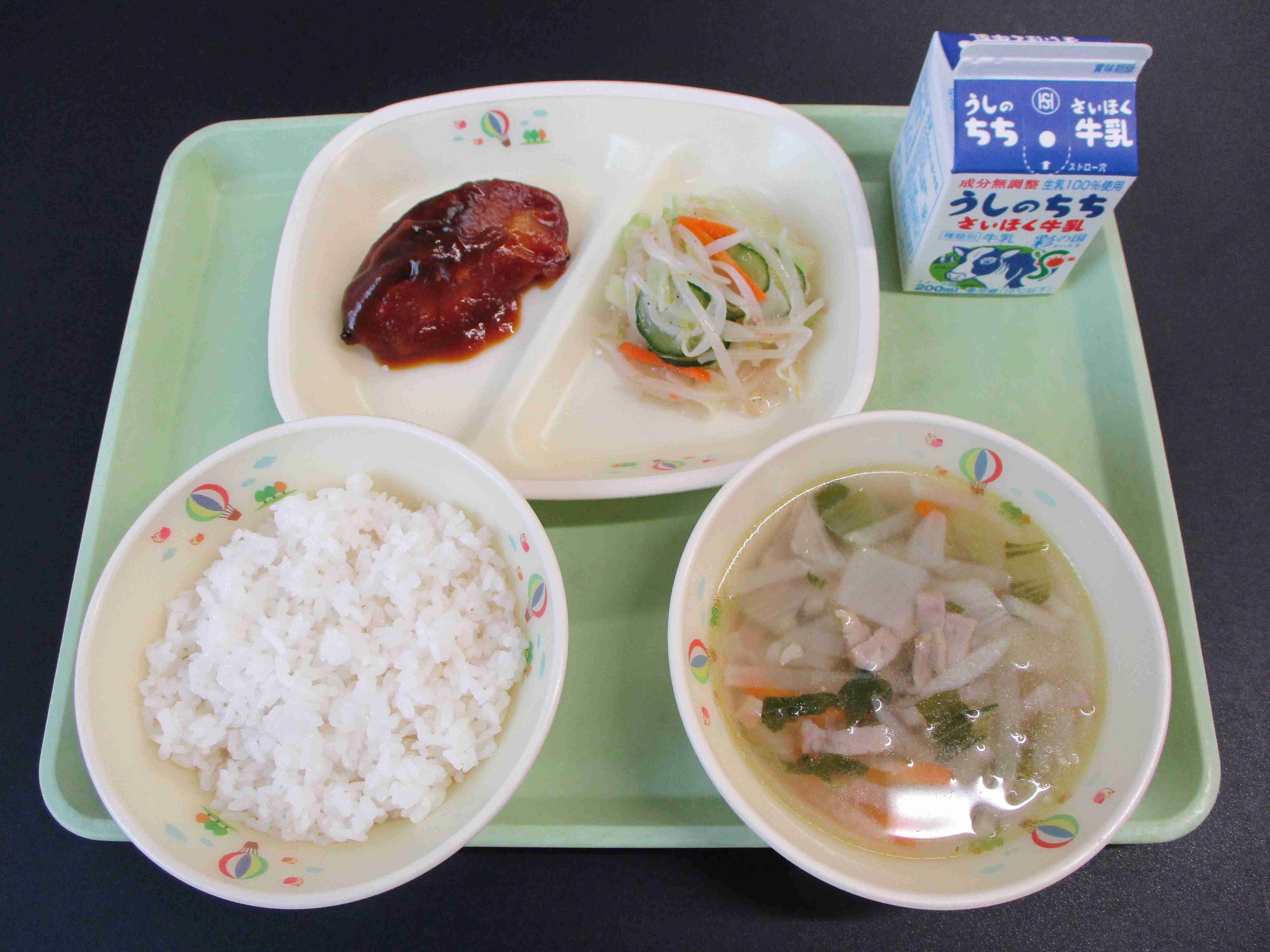 10月になりました。秋といえば 「読書の秋」「スポーツの秋」「芸術の秋」とたくさんありますが、給食は「食欲の秋」です。秋は、おいしい食べ物がたくさんとれる時期です。きのこ、さつまいも、れんこん、さば・・・と秋の味覚をたくさん給食の献立に取り入れました。旬の食品を食べて元気に過ごしましょう。お楽しみに。