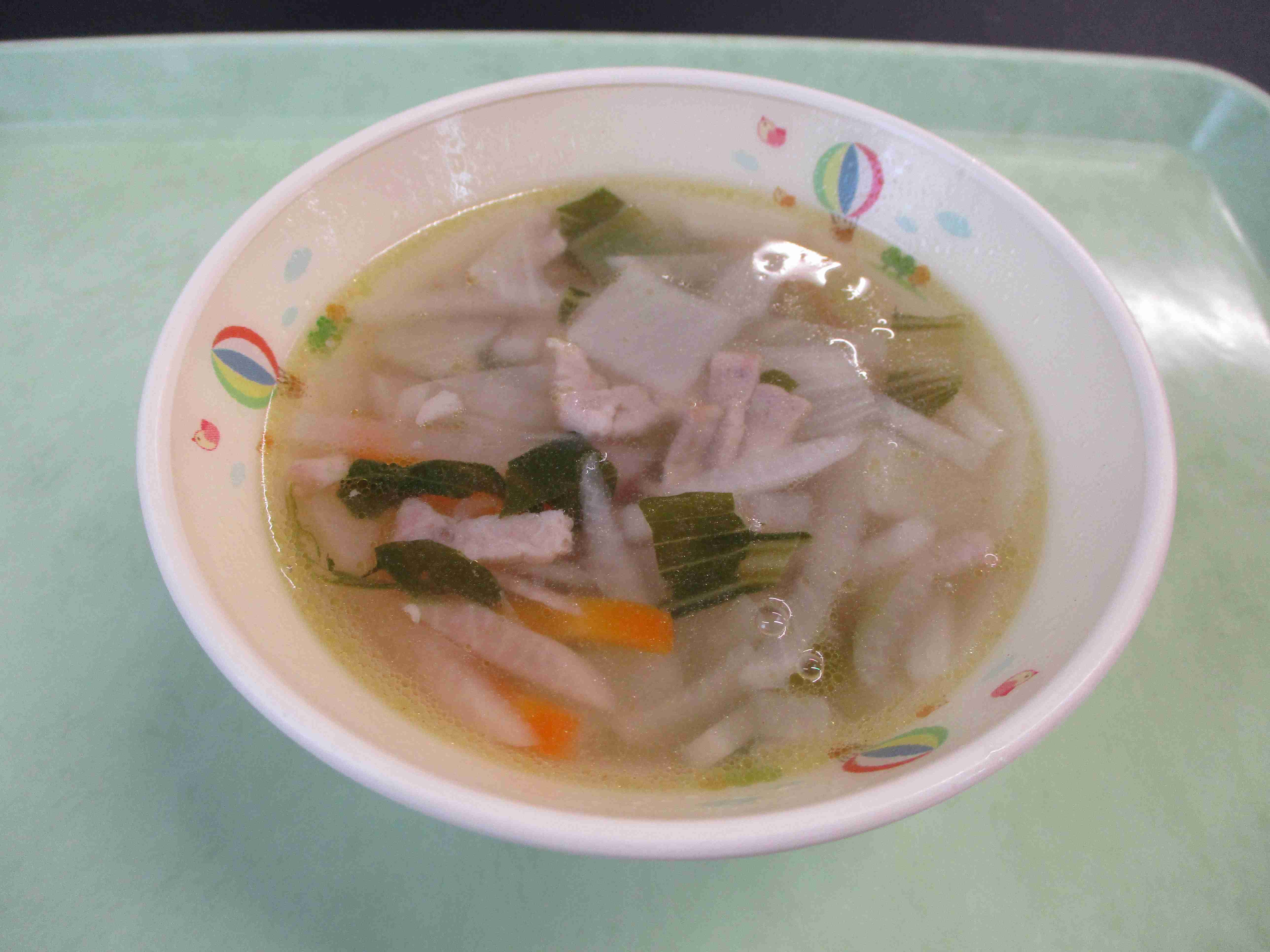 ごはん 牛乳 さばのみそかけ もやしサラダ 大根とベーコンのスープ