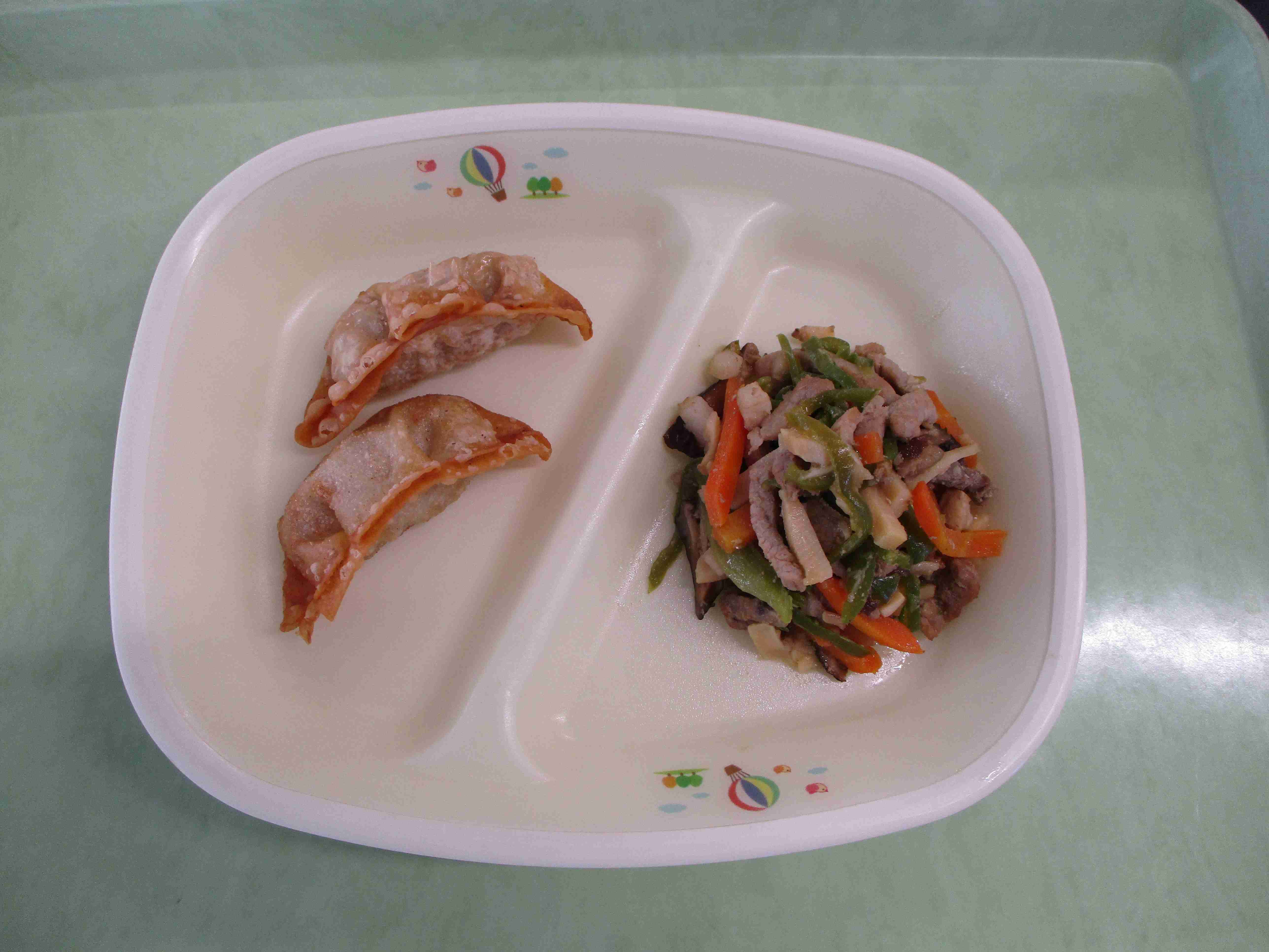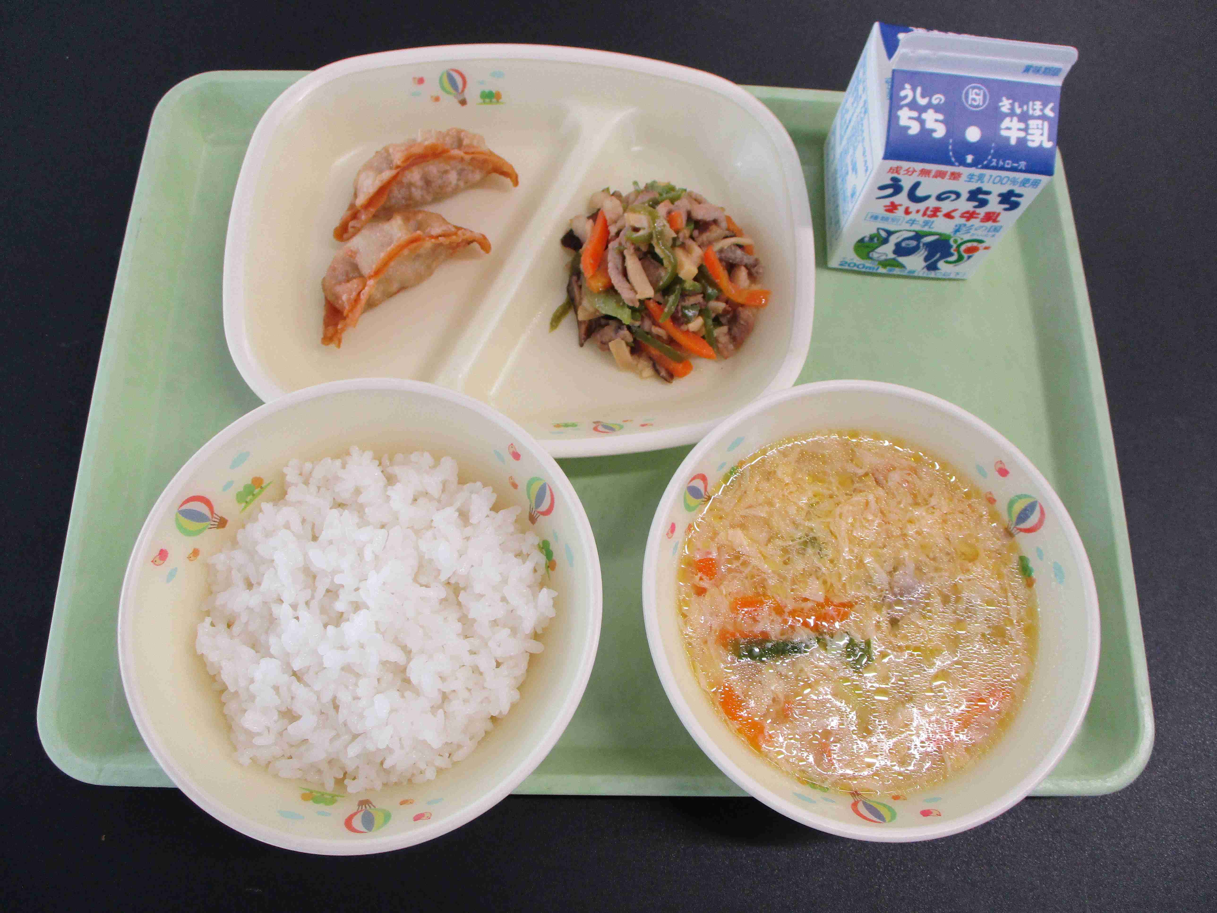 ごはん 牛乳 揚げぎょうざ チンジャオロース たまごスープ