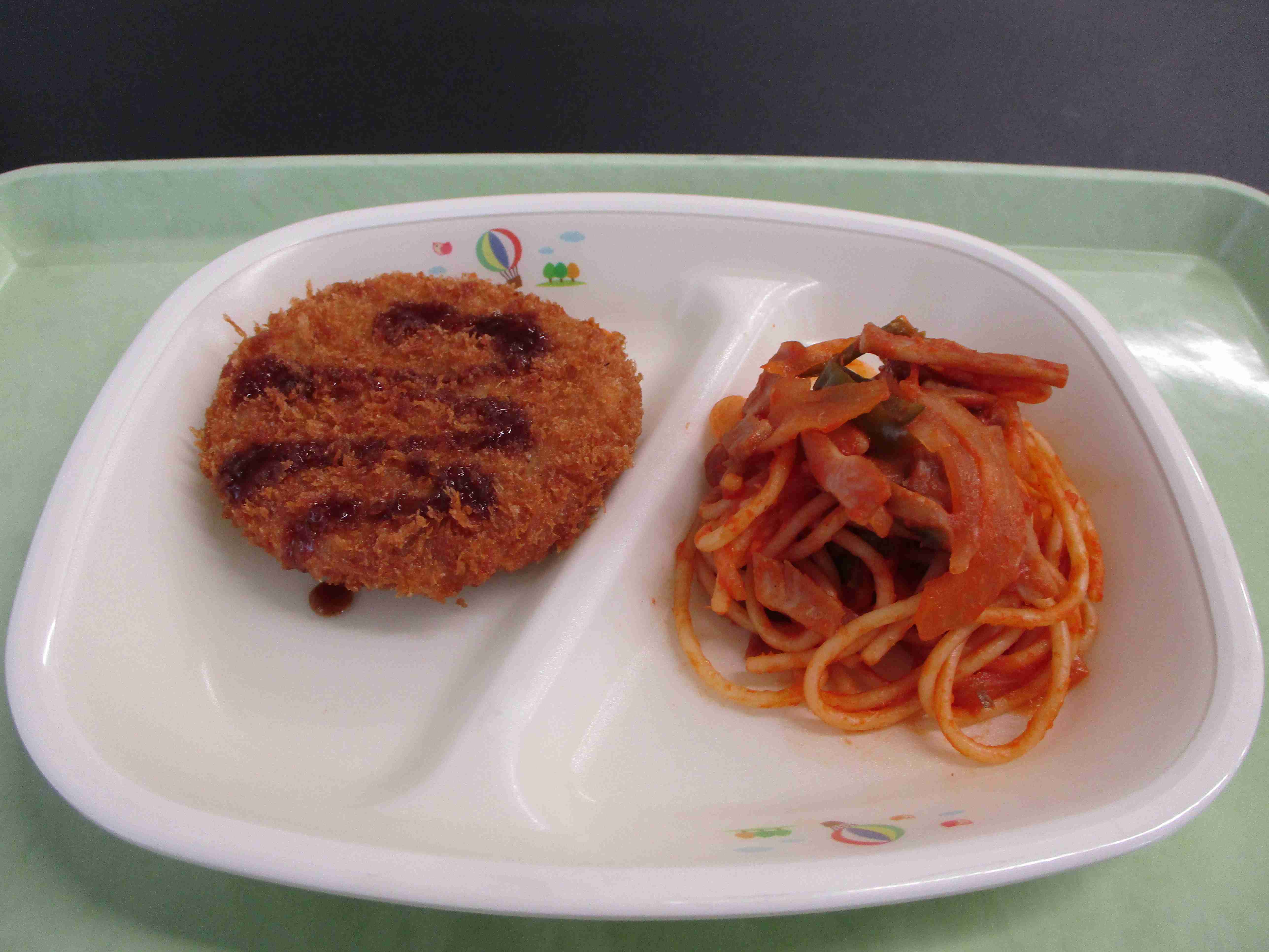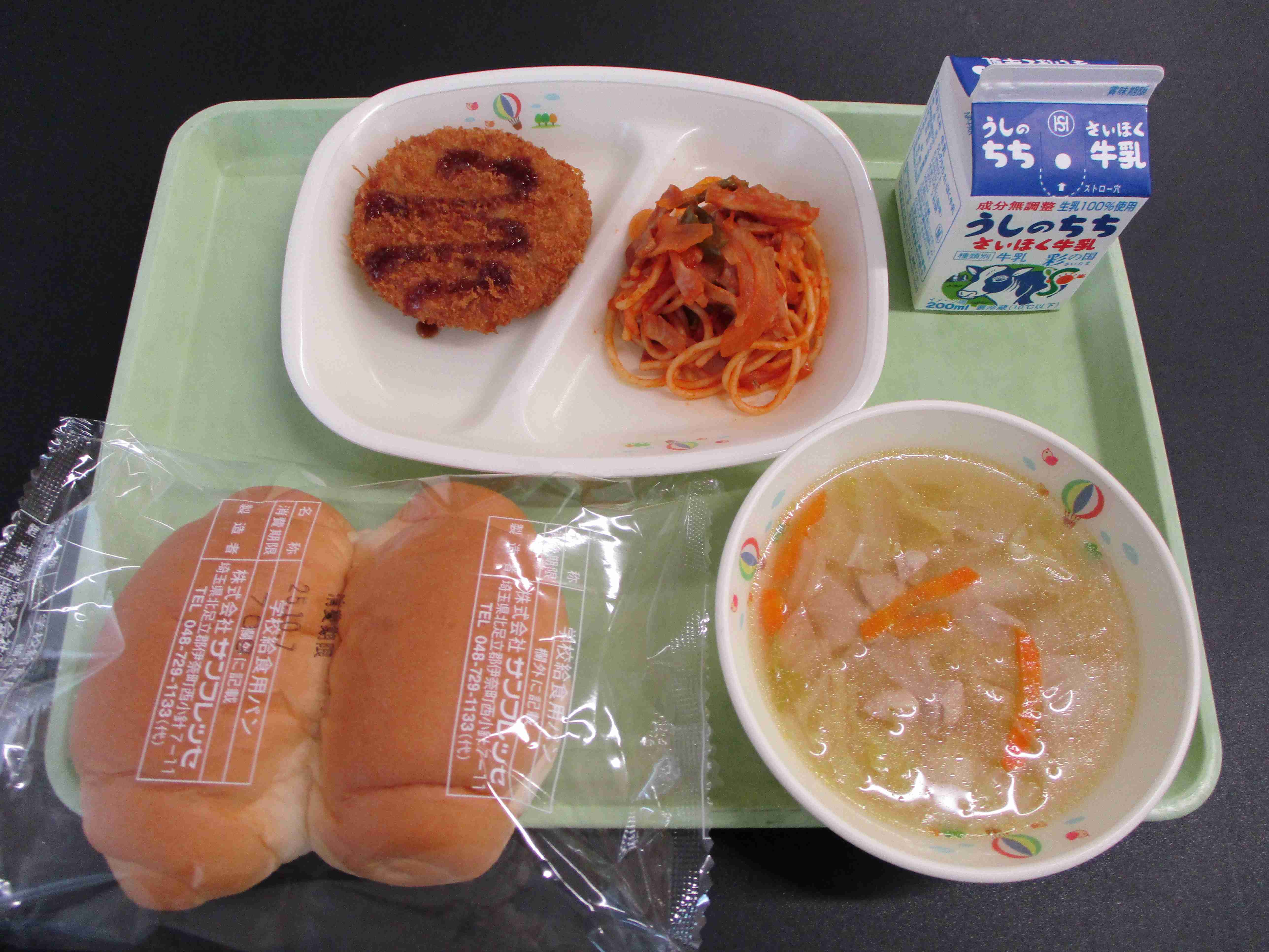 バターロール 牛乳 メンチカツ スパゲティナポリタン 白菜スープ