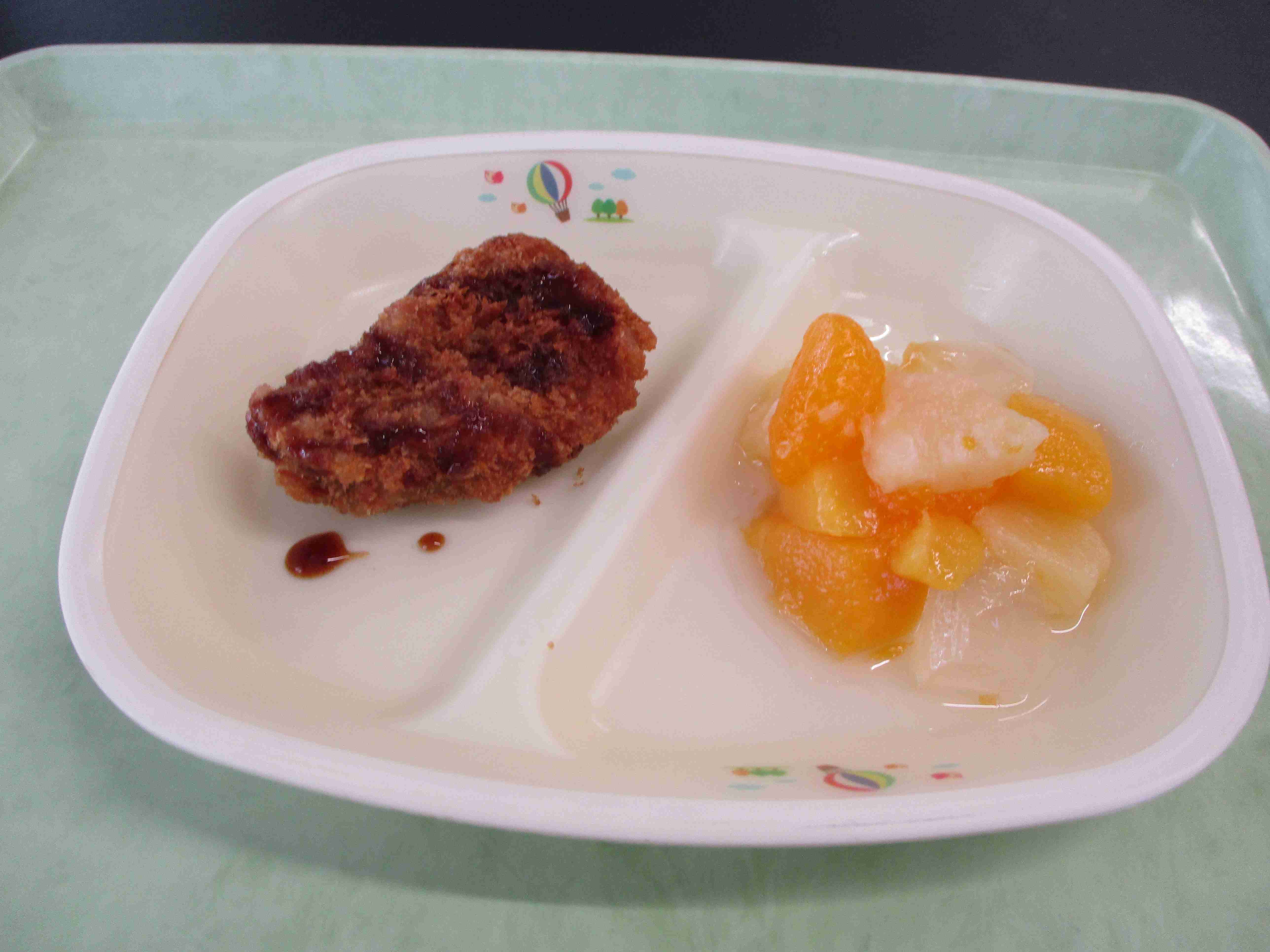 今日はとり肉のお話です。とり肉は、世界各地でさまざまな料理に使われています。体を作るのに大切なたんぱく質を多く含み、脂肪は動脈硬化などの予防に効果的でもあり家庭の食卓にかかせない食材です。クリームシチュー、トマト煮込み、から揚げ、焼き物、炒め物、照焼きなどいろいろな料理に使われています。今日は、チキンカツにしました。ごはんと一緒にたくさん食べてくださいね。