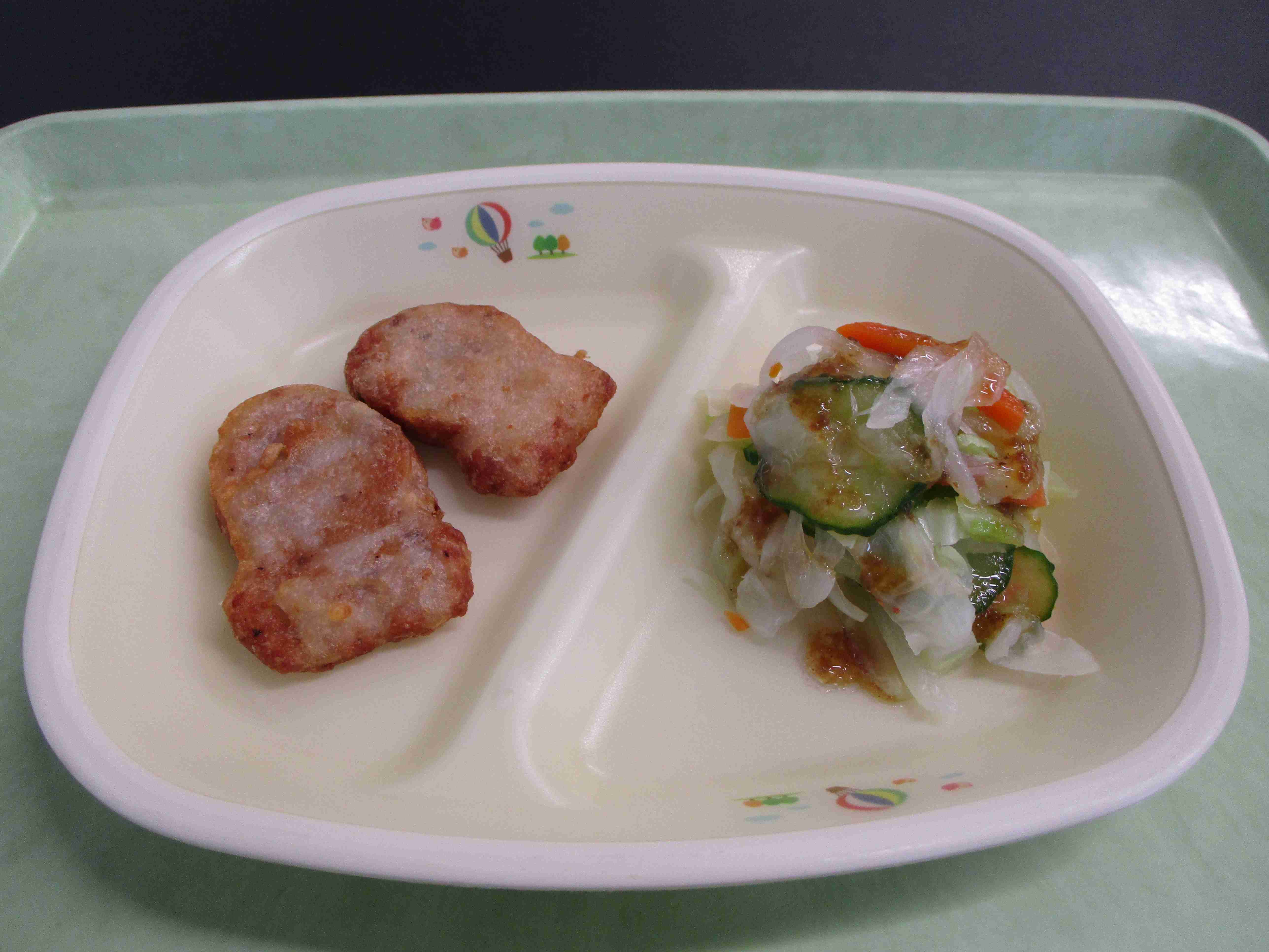 ごはん 牛乳 魚のサイコロ揚げ ごぼうサラダ みそ汁