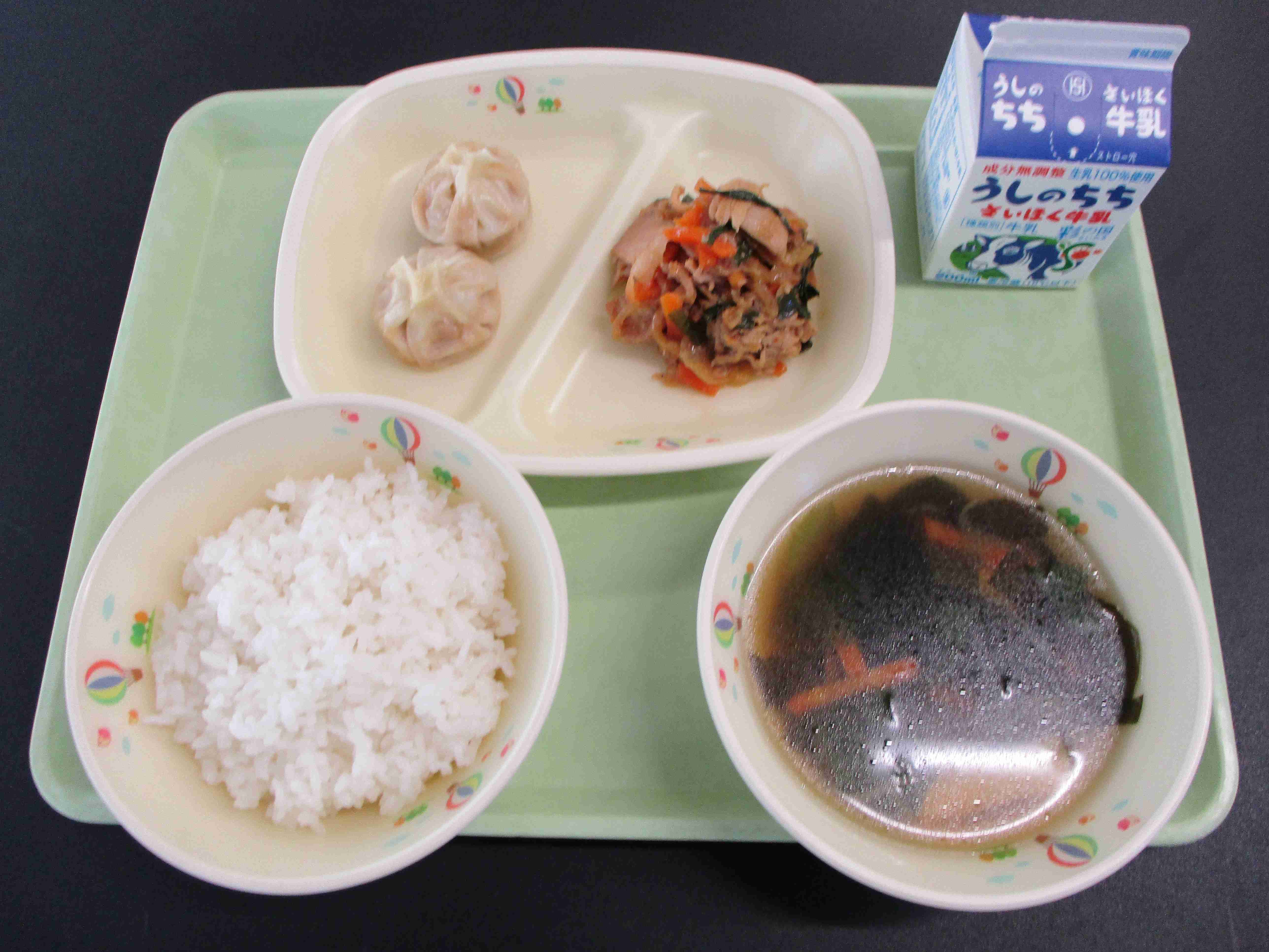 ごはん 牛乳 小籠包 焼き肉 わかめスープ
