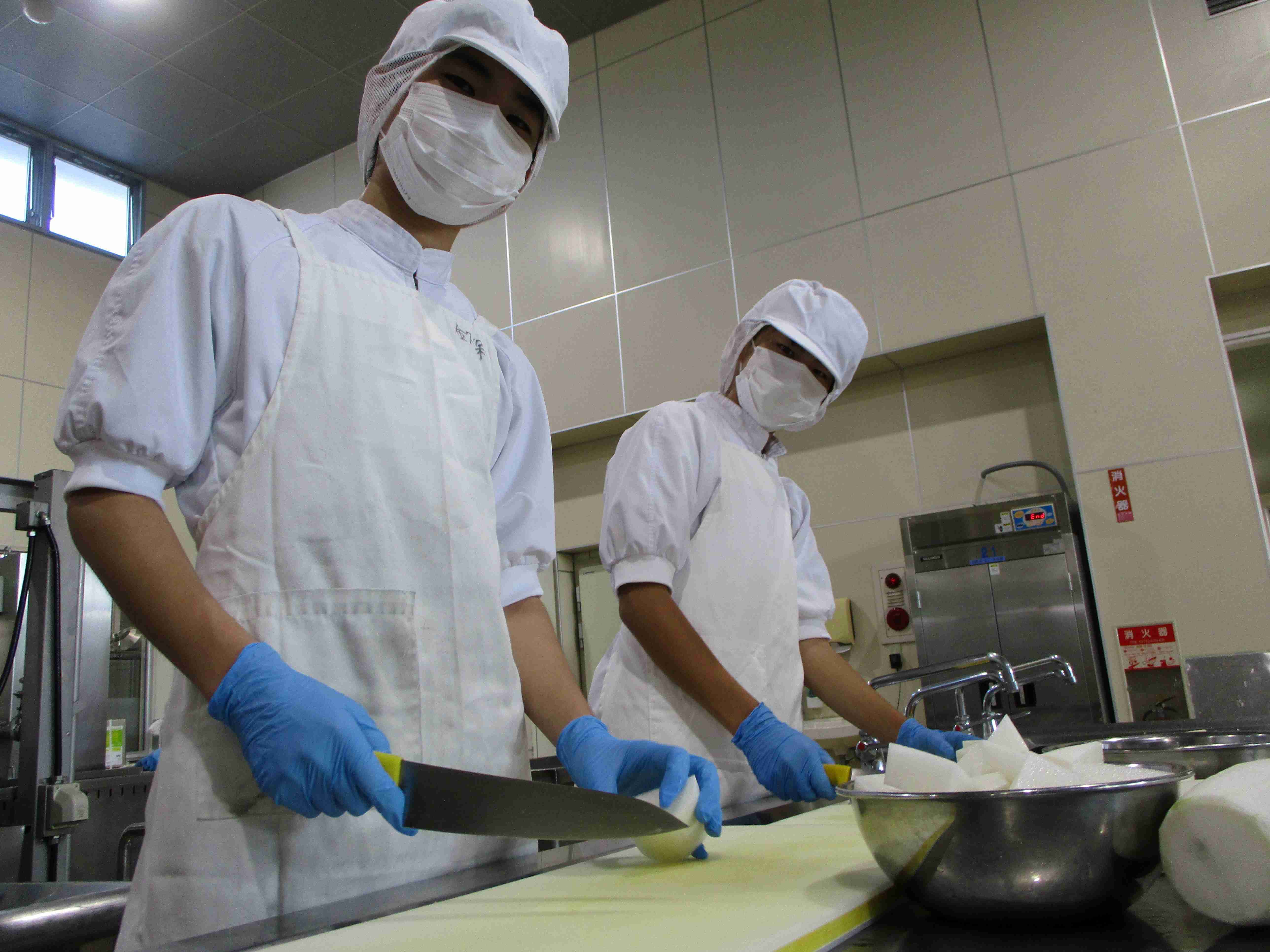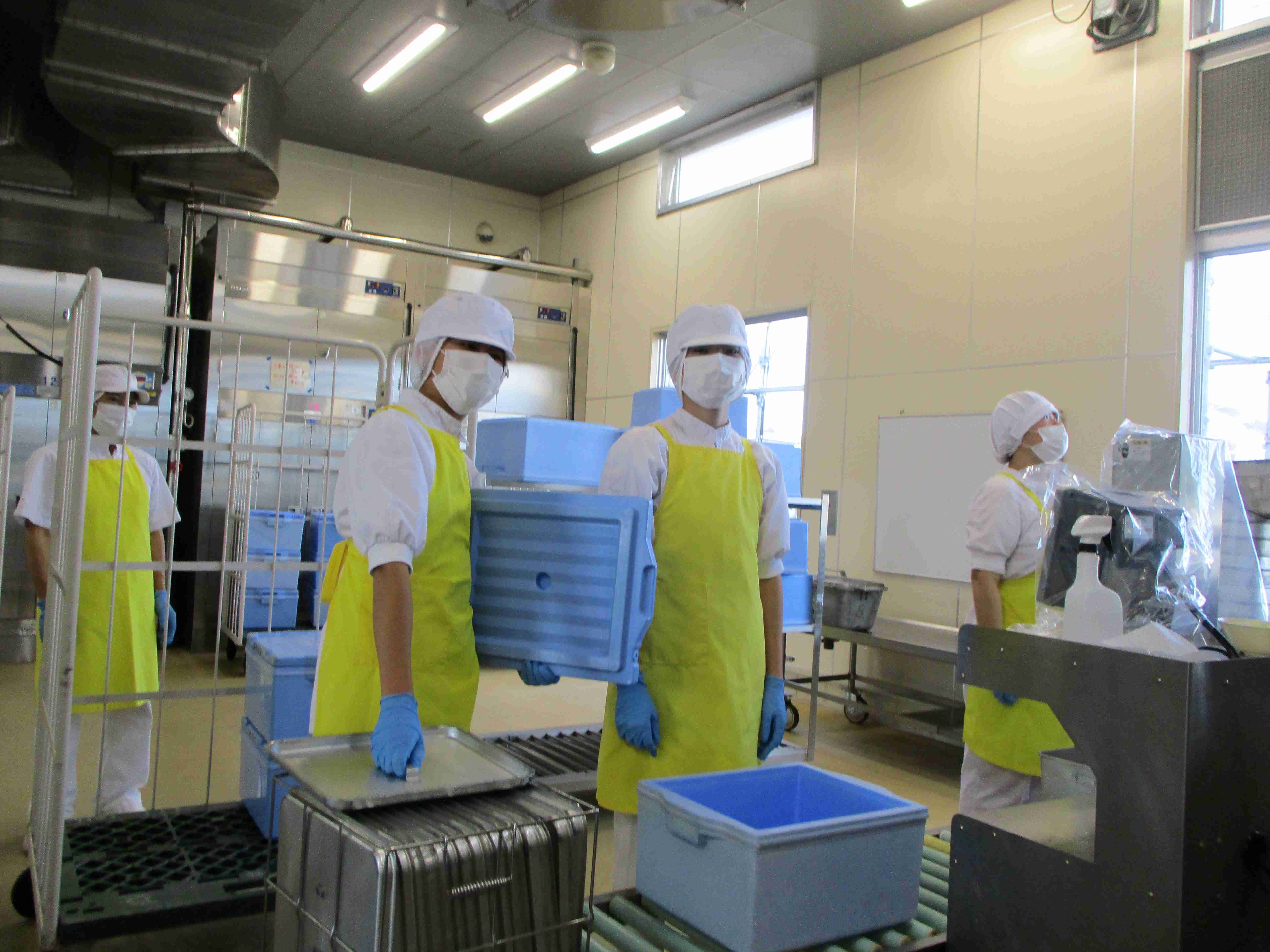 町内の事業所等で仕事体験をしますが当センターにも、昨日と今日の二日間、2名の中学生が来て慣れない環境の中で、一生懸命に給食作業をしていました。