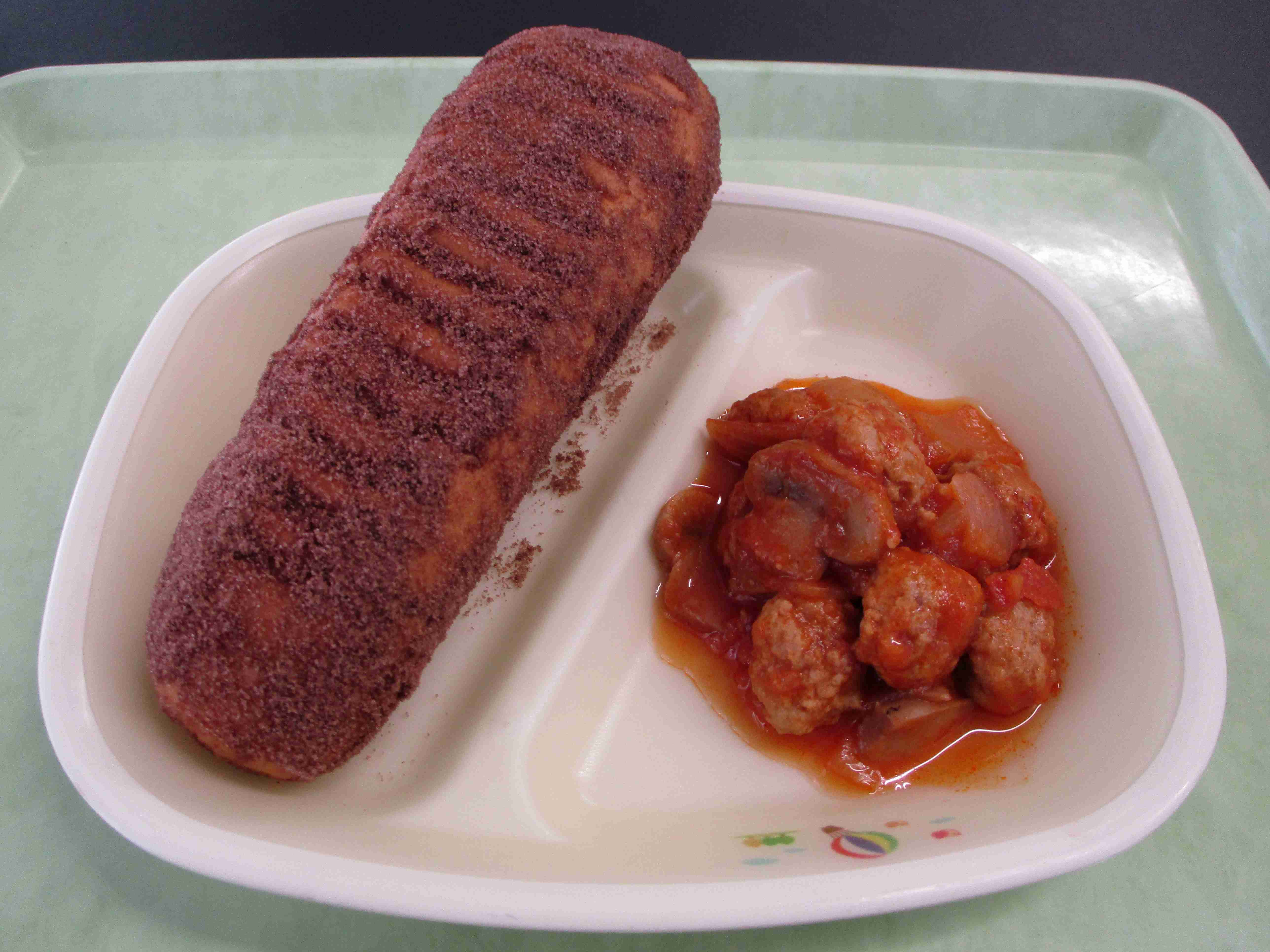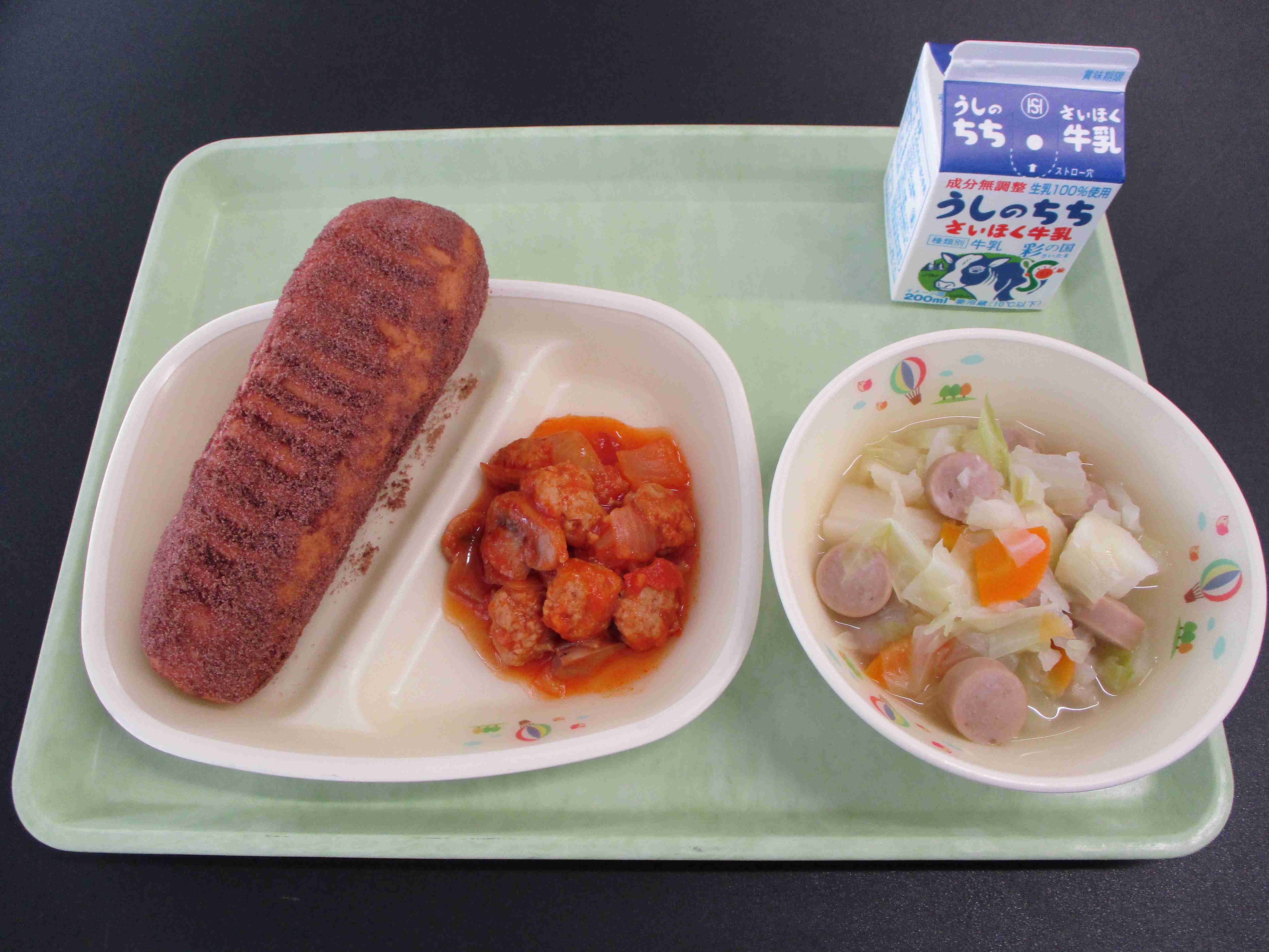 ココア揚げパン 牛乳 ミートボールのトマト煮 ポトフ
