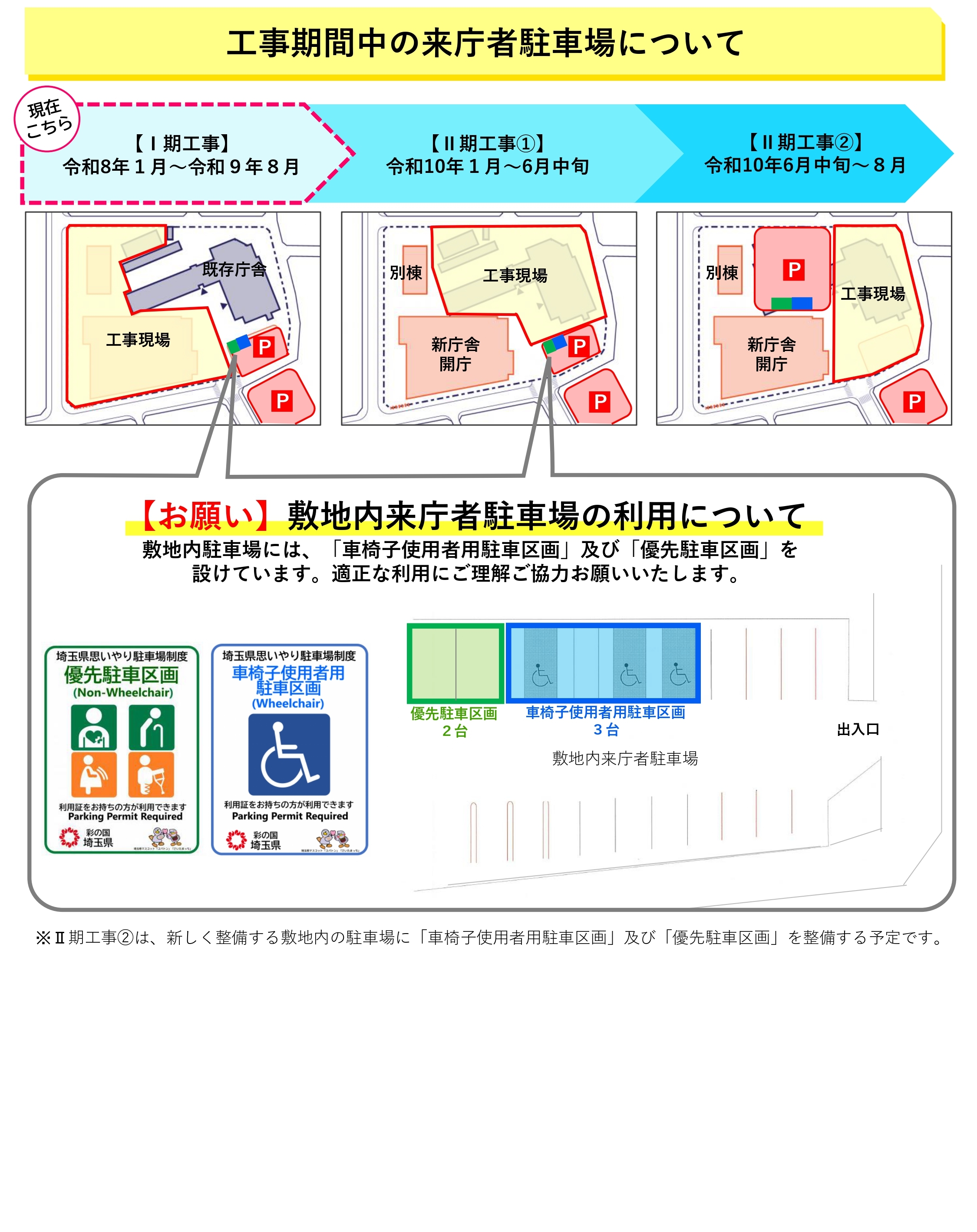 工事に伴い、来庁者駐車場の位置を変更しています。