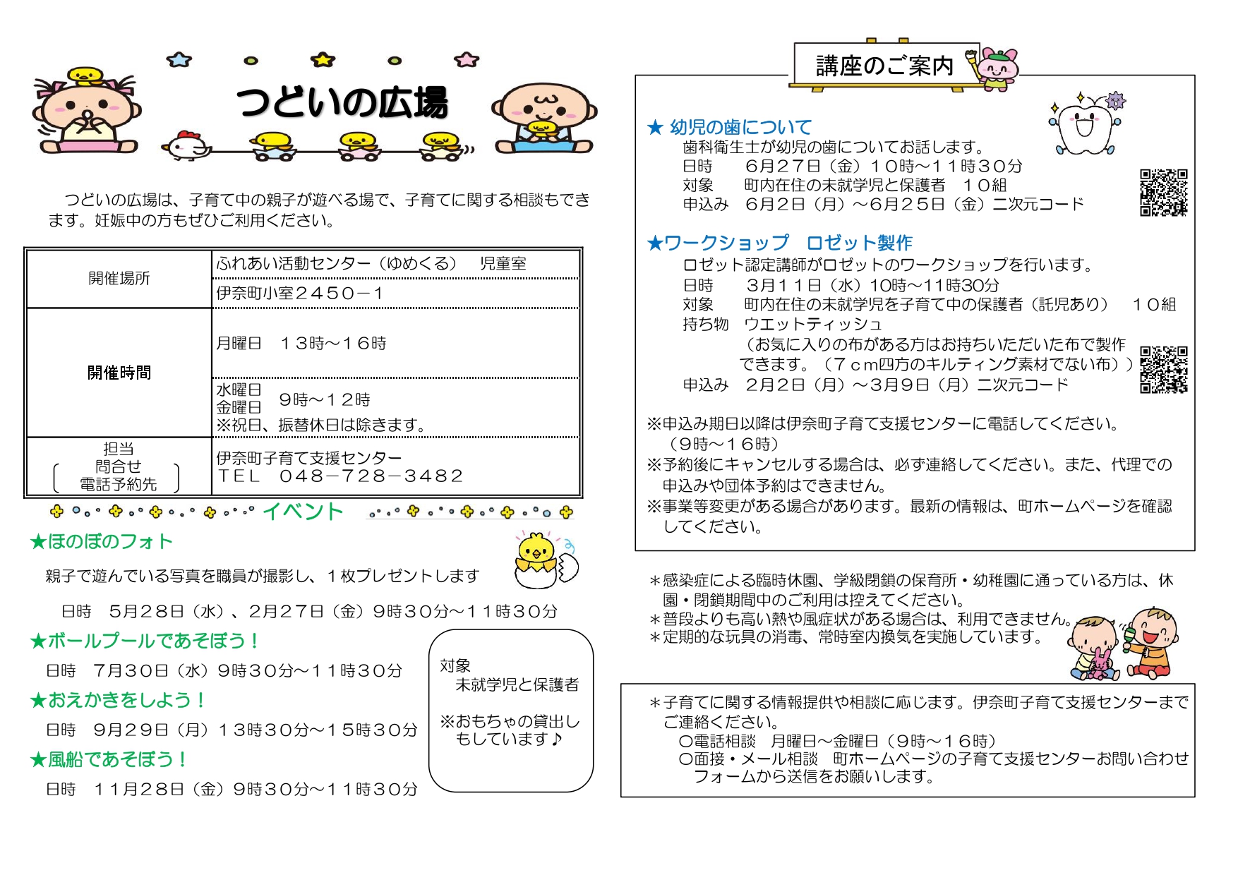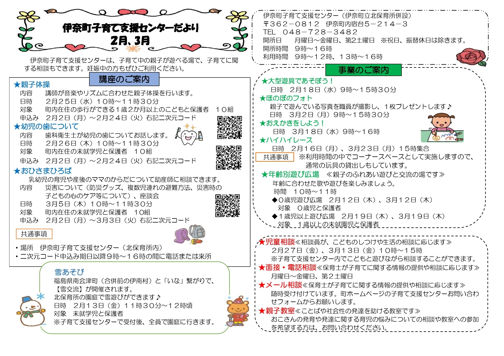 2月、3月伊奈町子育て支援センター、つどいの広場について