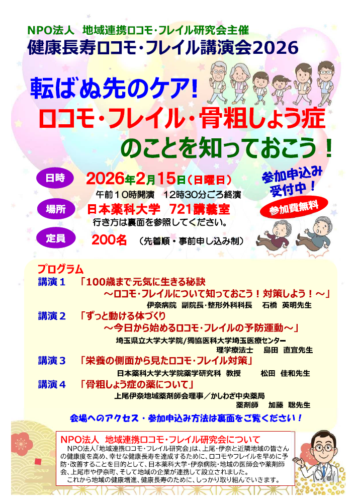 【受付中】2月15日(日曜日)実施:健康長寿ロコモ・フレイル講演会2026〜転ばぬ先のケア!ロコモ・フレイル・骨粗しょう症のことを知っておこう!〜